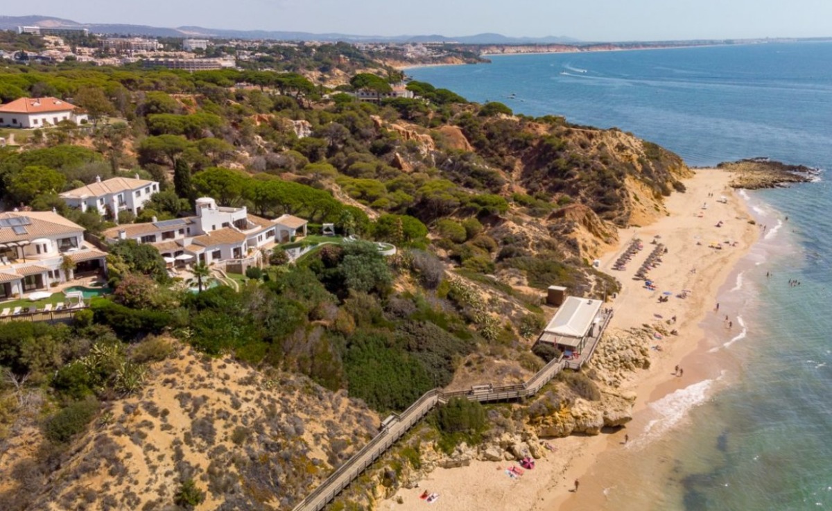 Вилла расположена на скалистом берегу над пляжем Прайя-да-Оура и обладает по-настоящему редким положением. Спуск к пляжу осуществляется по лестнице прямо из сада. Следует учитывать, что данный доступ может быть затруднителен для людей с ограниченной подвижностью; в этом случае удобнее воспользоваться близлежащим пляжем Святой Эулалии, до которого можно быстро доехать на автомобиле.
