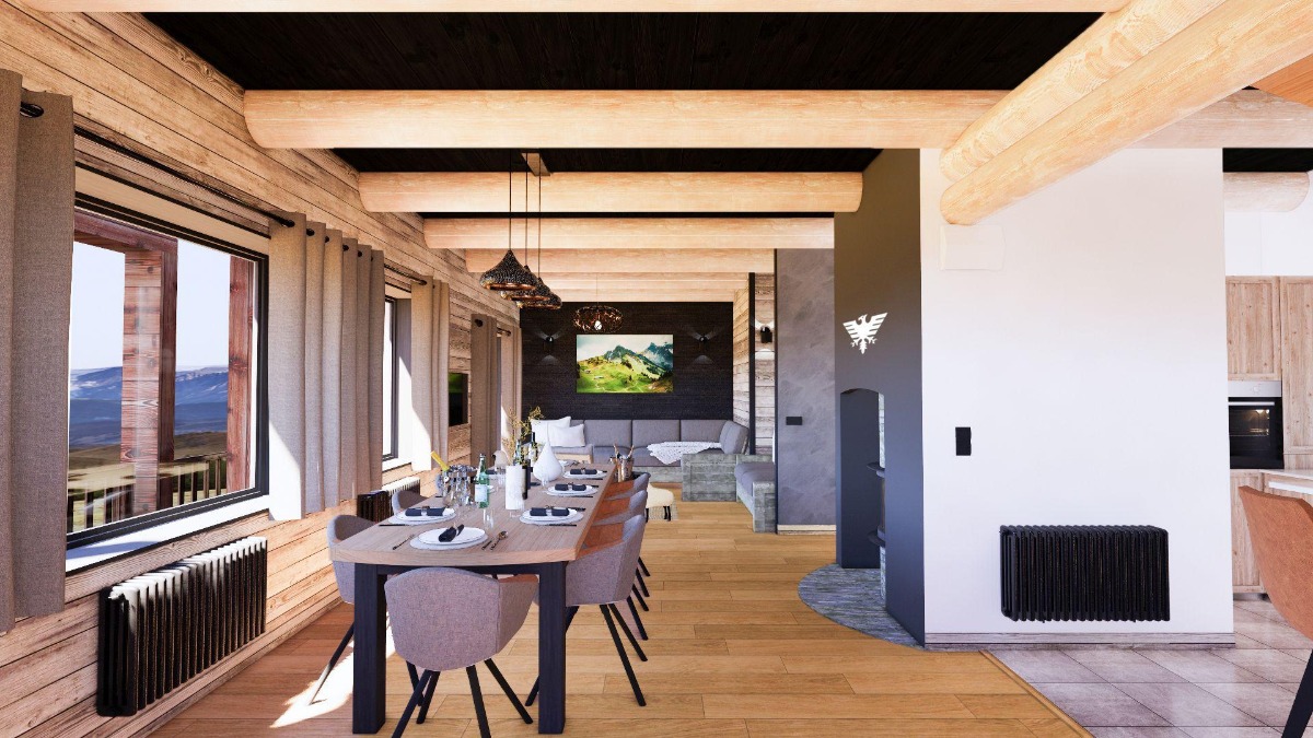 Обратите внимание: шале недавно было отремонтировано к сезону 2022/23, поэтому изображения в настоящее время представлены только в компьютерной графике. Они будут обновляться по мере появления новых фотографий.