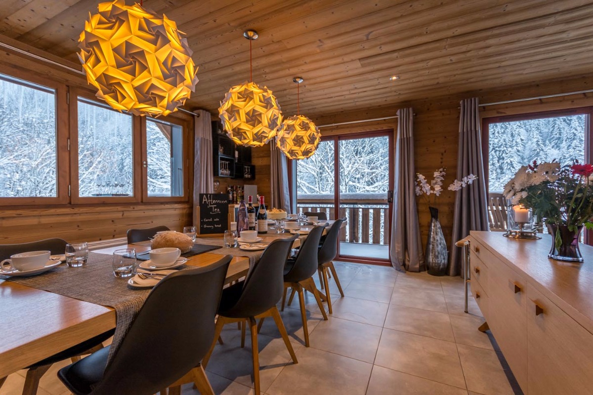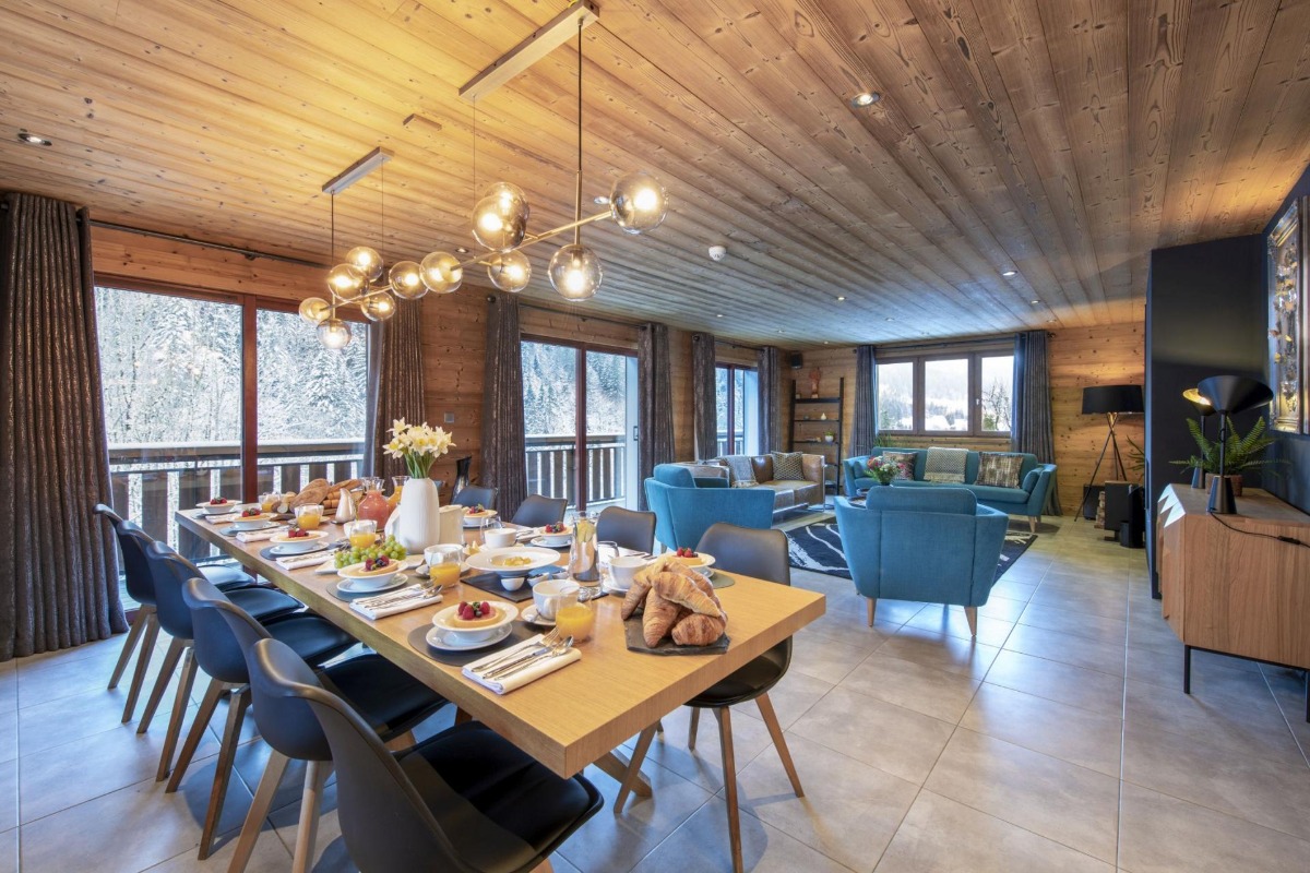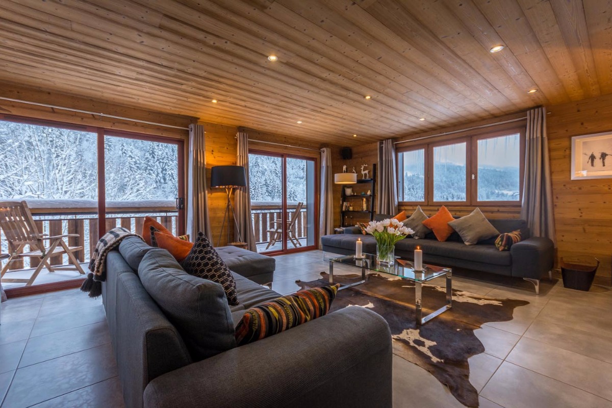 - полноразмерное остекление и большая терраса, откуда открывается потрясающий вид на горы Пуэнт-де-Ньон и лыжные склоны Морзина.