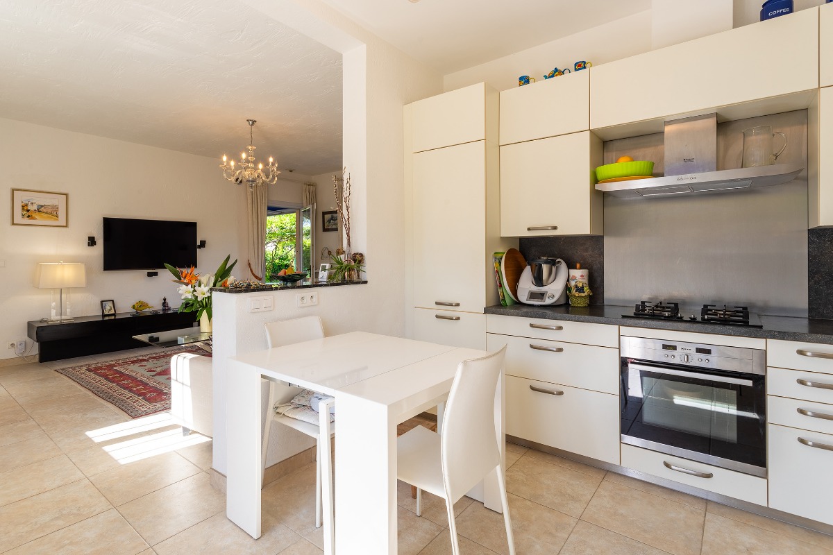 На вилле - гостиная-столовая с выходом на террасу с обеденным столом и барбекю, оборудованная кухня, 2 спальни с 2-спальными кроватями, ванная-туалет, гостевой туалет. Отдельное студио с небольшой кухней, спальней с 2-спальной кроватью, ванной-туалетом.