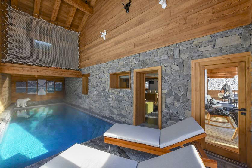 До лыжной трассы 20 метров До подъемника 350 метров До магазина 500 метров До ресторана 300 метров До аэропорта Geneve 180 километров Шале состоит: - гостиная - столовая - отдельная кухня Спальни 5 - с двуспальной кроватью 4 - с двухэтажной кроватью 1 Кол-во ванных комнат 6 - душевая кабина, умывальник, WC - 2 - ванна, умывальник, WC - 3 - отдельный туалет 1 - сушильный шкаф В шале есть: Отопление/охлаждение объекта - Центральное отопление - Камин Мультимедиа - ТВ (количество телевизоров) 7 - Спутниковые каналы Кухня - Посуда, столовые приборы, проч. - Холодильник - Микроволновая печь - Стиральная машина - Посудомоечная машина - Утюг и гладильная доска - Кофеварка Коммуникации - WI-FI Аксессуары для детей - Детская кроватка по запросу Охранные системы - Сигнализация Проживание с домашними животными - не разрешается Территория: - Парковка на количество машин 3 - Терраса - Садовая мебель - Барбекю - Бассейн Краткое описание: Hовое шале ски-ин ски-аут с бассейном на курорте Мерибель в 5 минутах пешком от центра с магазинами и ресторанами.