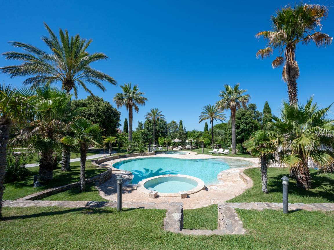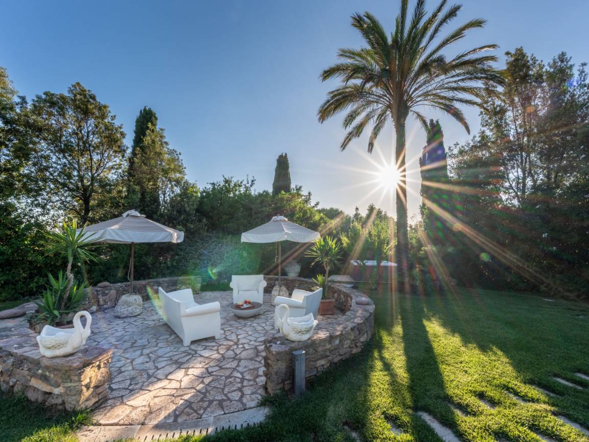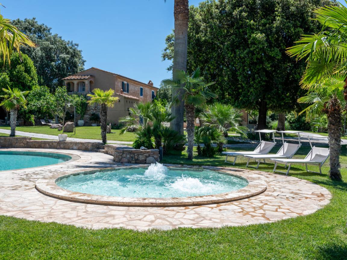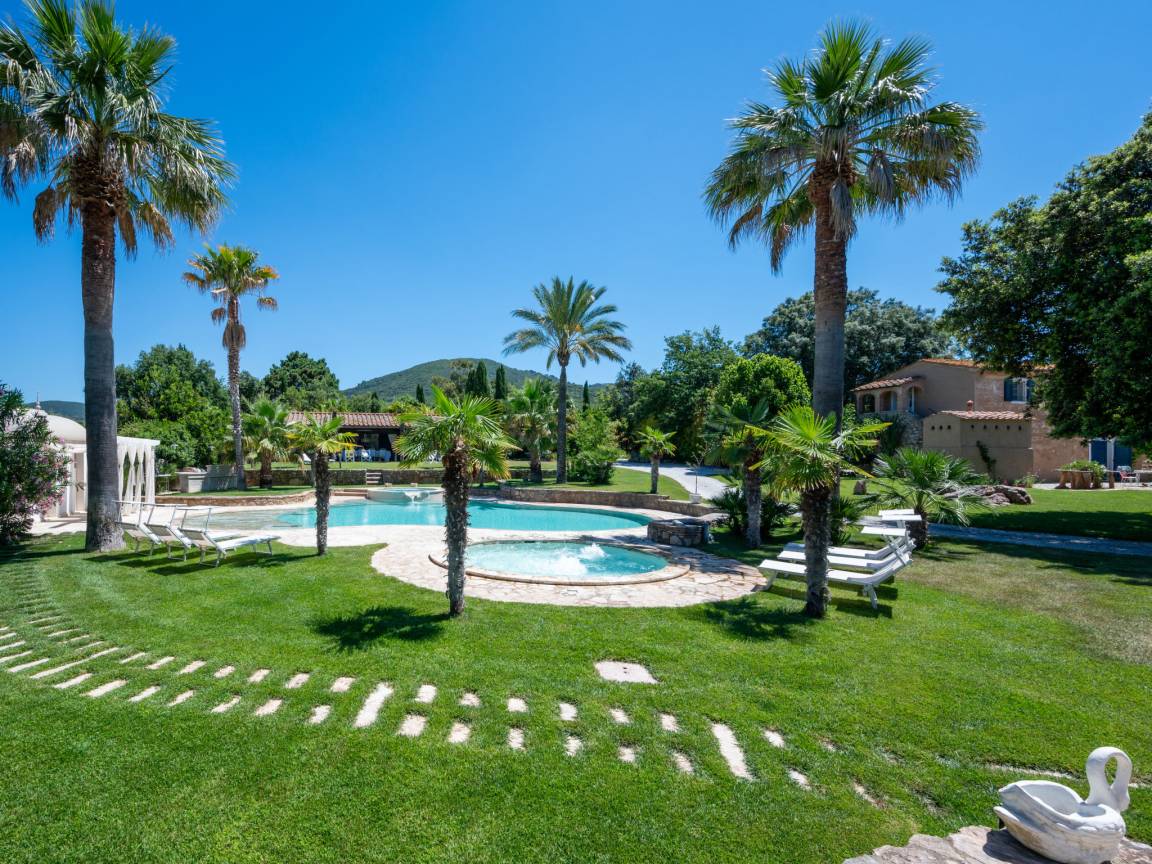 До моря 3500 метров До песчаного пляжа 5000 метров До магазина 3000 метров До ресторана 2000 метров До города San Vincenzo 5 километров До ж\д станции 6 километров До аэропорта Pisa 70 километров Рекомендован автомобиль Вилла состоит: - гостиная - столовая - гостиная, совмещенная со столовой - отдельная кухня Спальни 4 - с двуспальной кроватью 3 - с двумя односпальными кроватями 1 - диван-кровать 2 - дополнительная кровать 1 Кол-во ванных комнат 4 - душевая кабина, умывальник, WC - 4 - джакузи На вилле есть: Отопление/охлаждение объекта - Кондиционеры - Камин - Электрическое отопление - Газовое отопление Мультимедиа - ТВ (количество телевизоров) 5 - Спутниковые каналы - Stereo система - Домашний кинотеатр - Радио Кухня - Посуда, столовые приборы, проч. - Холодильник - Микроволновая печь - Стиральная машина - Посудомоечная машина - Утюг и гладильная доска - Кофеварка - Электрочайник - Тостер Коммуникации - WI-FI Аксессуары для детей - Детская кроватка - Детская кроватка по запросу - Детский стульчик Проживание с домашними животными - можно Территория: - Парковка на количество машин 5 - Сад - Терраса - Садовая мебель - Барбекю - Бассейн - Шезлонги - Зонтик от солнца - Летний душ - Летняя кухня Краткое описание: Потрясающая тосканская усадьба с настоящим южным характером: пальмы, простор, солнце и большой частный парк с огромным бассейном и джакузи. Дом утопает в зелени, при этом море и пляжи находятся всего в 5 минутах на машине.