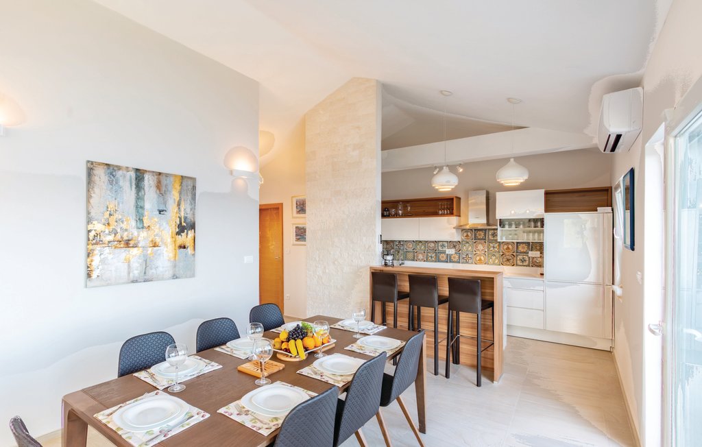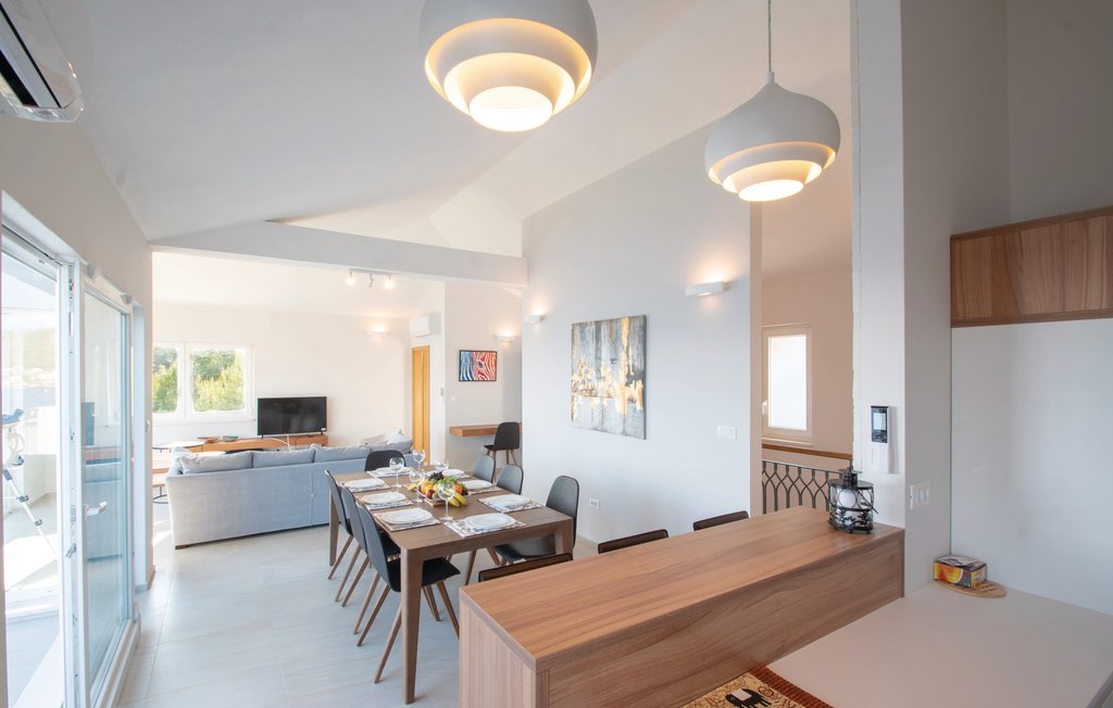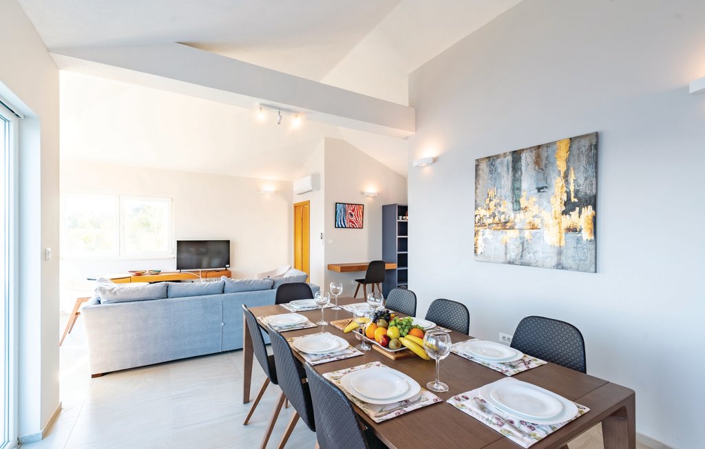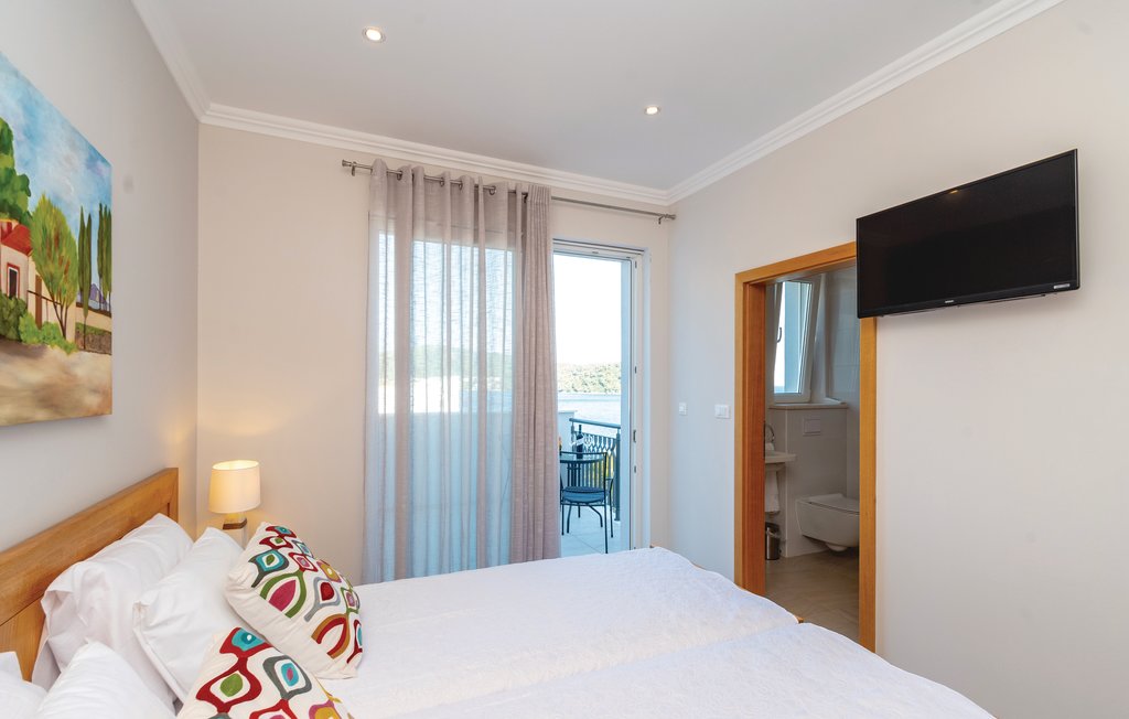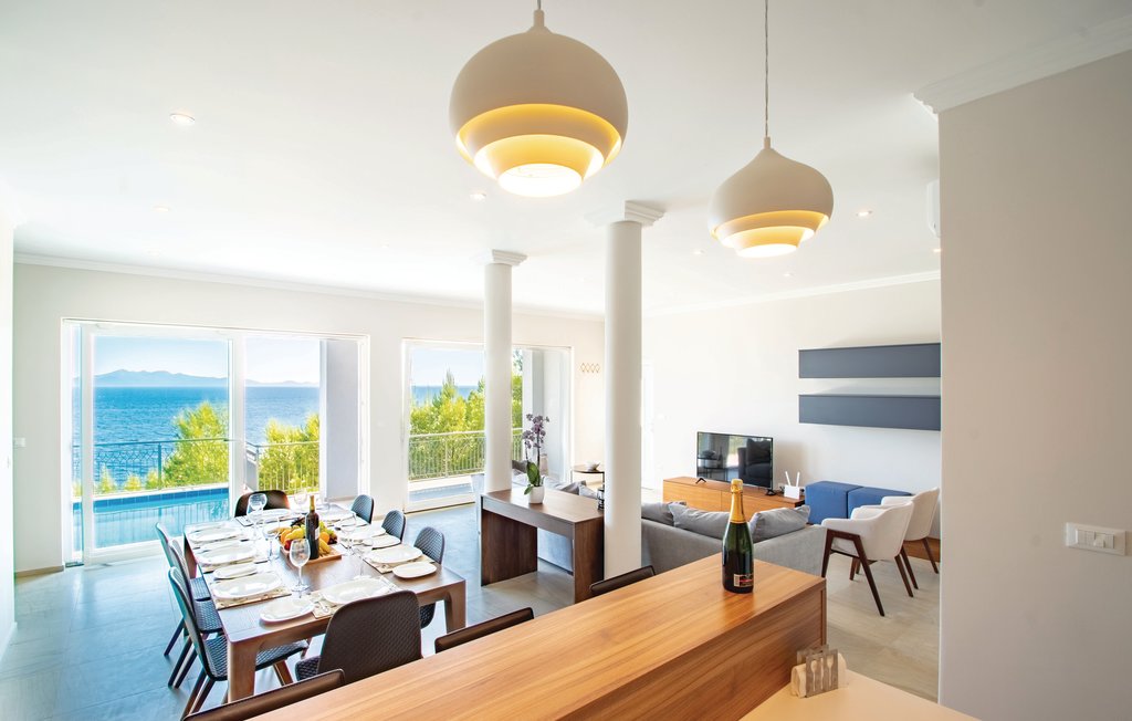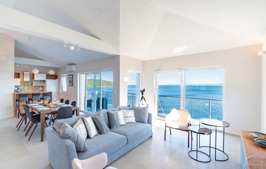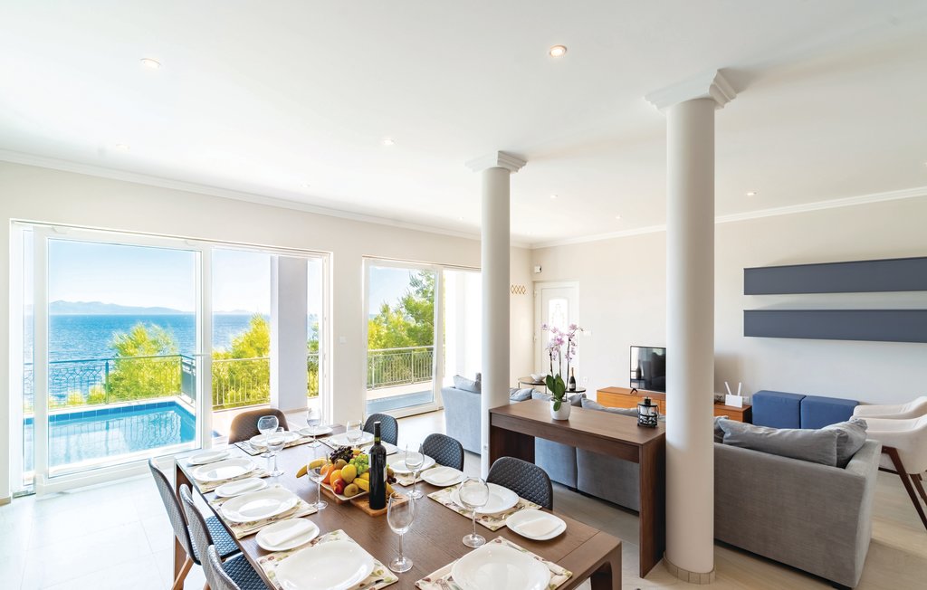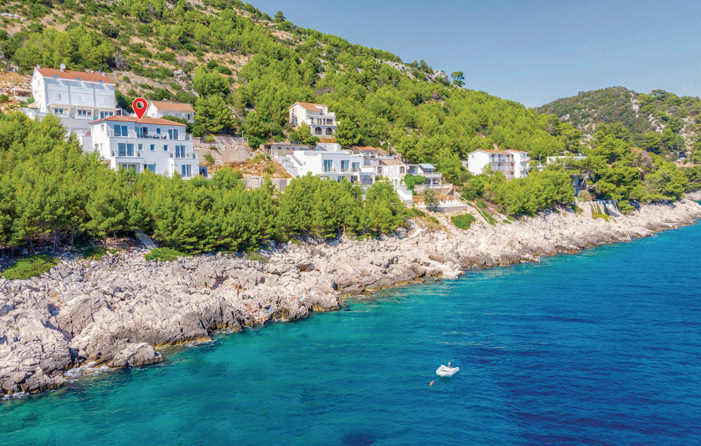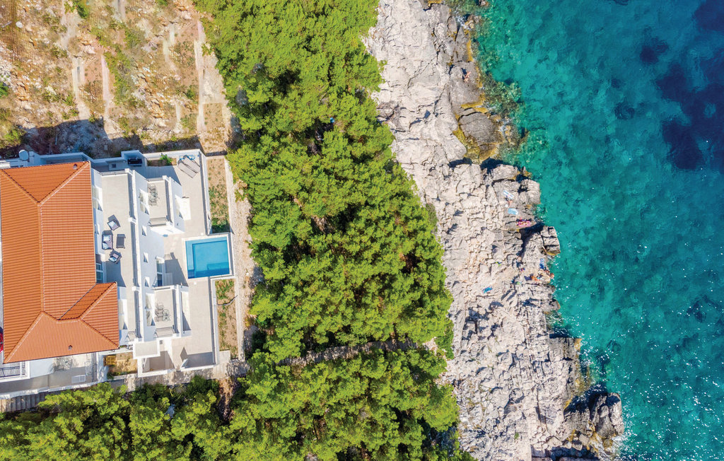 До моря 10 метров До скалистого берега 10 метров До города Korcula 30 километров До аэропорта Dubrovnik 160 километров Рекомендован автомобиль Вилла состоит: - гостиная - столовая - гостиная, совмещенная со столовой - отдельная кухня Спальни 5 - с двуспальной кроватью 3 - с двумя односпальными кроватями 2 На вилле есть: Отопление/охлаждение объекта - Кондиционеры Кухня - Посуда, столовые приборы, проч. - Холодильник - Микроволновая печь - Стиральная машина - Посудомоечная машина - Кофеварка Коммуникации - WI-FI Аксессуары для детей - Детская кроватка по запросу Охранные системы - Сигнализация Проживание с домашними животными - не разрешается Территория: - Парковка на количество машин 6 - Терраса - Садовая мебель - Барбекю - Бассейн - Шезлонги - Зонтик от солнца Краткое описание: Этот великолепный дом отдыха с бассейном расположен прямо на берегу моря, в бухте Виначац, недалеко от города Брна, на чудесном острове Корчула, и предлагает исключительный вид на море.