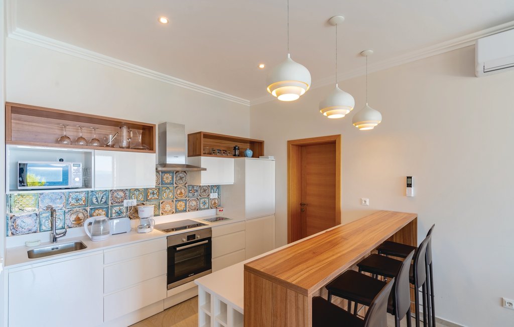 Чистые линии, роскошные детали и высококачественные материалы завершают элегантную общую картину этой виллы. На первом этаже - просторная гостиная и полностью оборудованная кухня, главная спальня с ванной комнатой и красивой террасой с бассейном и барбекю на открытом воздухе. Внутренняя лестница ведет на второй этаж с 4 кондиционированными спальнями и ванными комнатами, а также выходом на балконы с видом на море. На втором этаже красивая кухня с гостиной и террасой с видом на море.