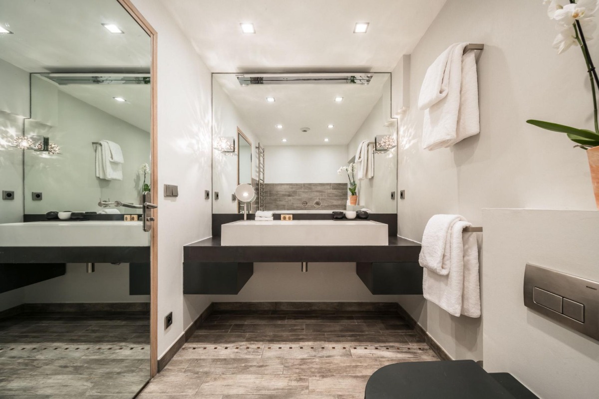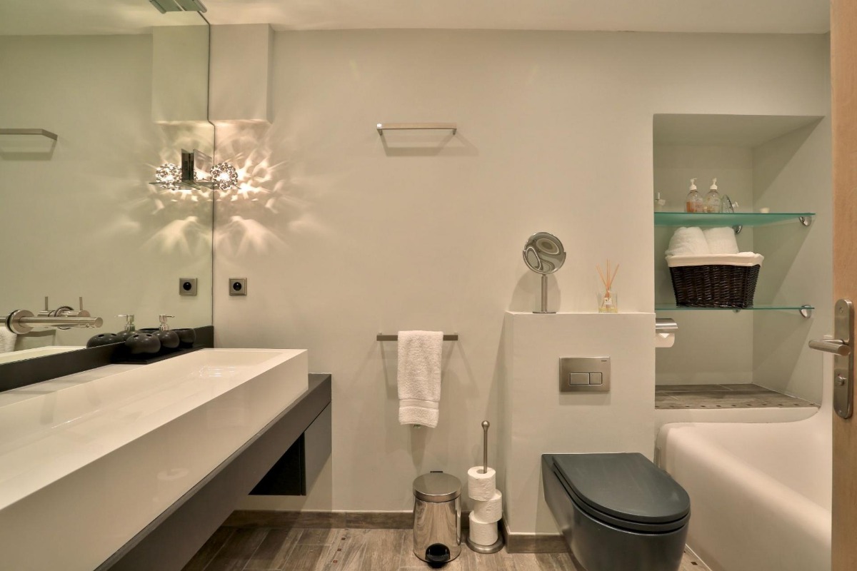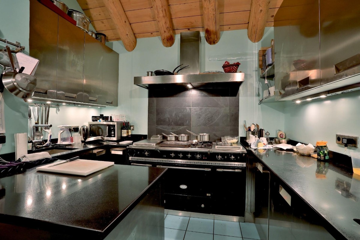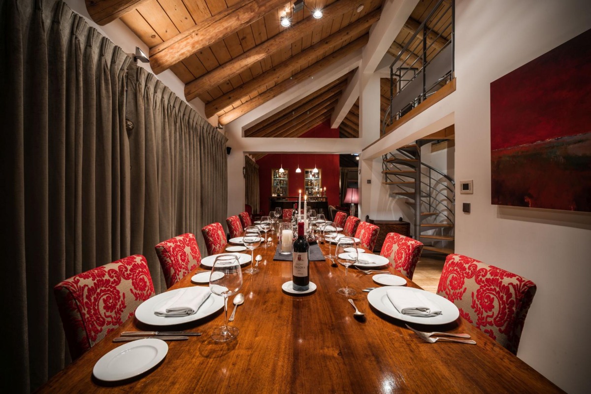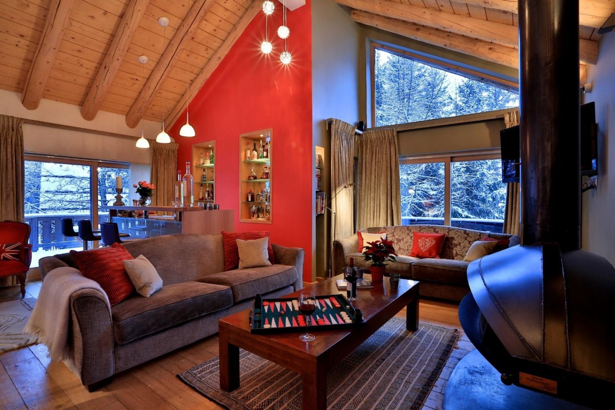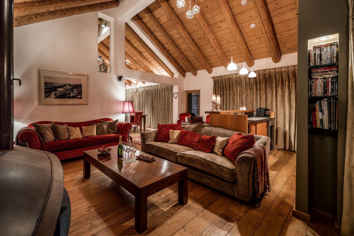 Просторная столовая открытой планировки, гостиная и бар сливаются воедино, образуя теплое и уютное жилое пространство. Сочетая традиционные альпийские черты с некоторыми роскошными современными штрихами, зона отдыха шале предлагает приятное место для проведения вечеров. Высокие сводчатые потолки, подвесной камин и стильный бар только добавляют очарования этому впечатляющему пространству. Обеденная зона состоит из огромного элегантного обеденного стола, идеально подходящего для изысканного ужина для гурманов. Винтовая лестница ведет наверх в антресольный кабинет, из которого открывается вид на основное жилое пространство, а на нижнем этаже вы можете найти большой телевизор для уютного вечернего просмотра. Высокие окна от пола до потолка в главной гостиной обеспечивают много естественного света и выходят на просторный балкон, выходящий на южную сторону, где можно понежиться в лучах полуденного солнца после катания на лыжах.
