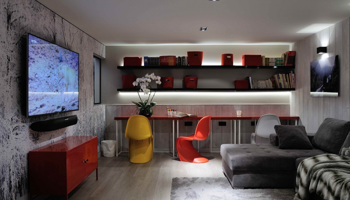 Оздоровительный центр и основные удобства для отдыха в шале расположены на цокольном этаже. Здесь вы найдете джакузи, тренажерный зал, сауну и кинозал!