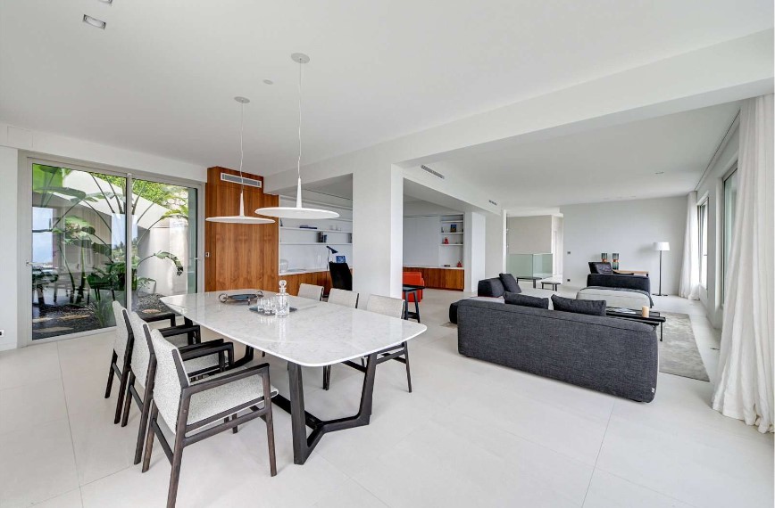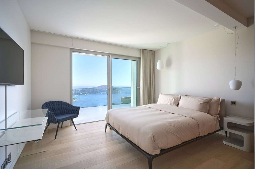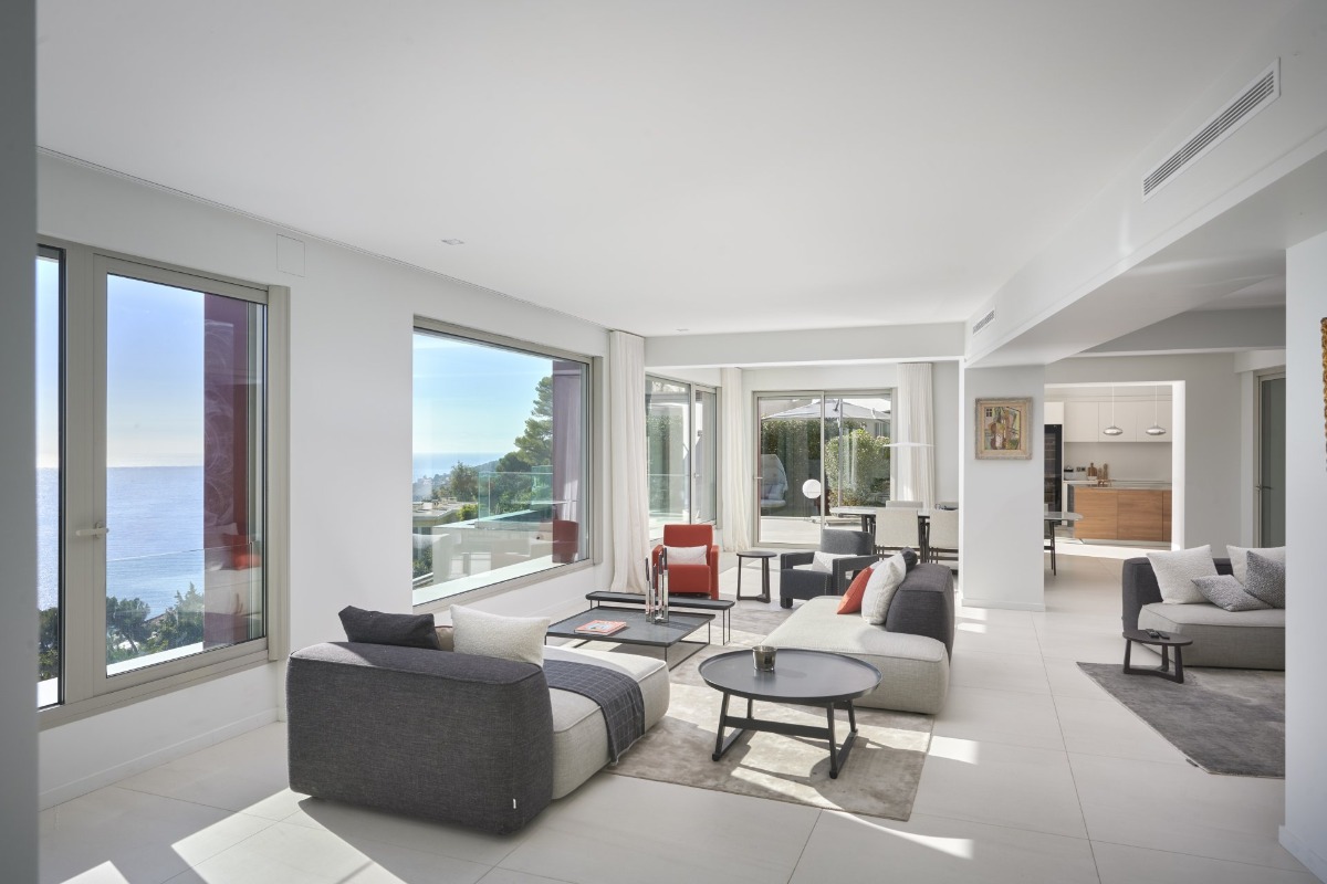 Дом площадью 460 кв. м, представленный в безупречном состоянии, отличается современным элегантным декором с использованием высококачественных материалов и отделки, предлагая одновременно комфорт и роскошь. Окна от пола до потолка оптимизируют естественное освещение и в полной мере используют исключительный фон Средиземного моря и окружающее побережье Французской Ривьеры.
