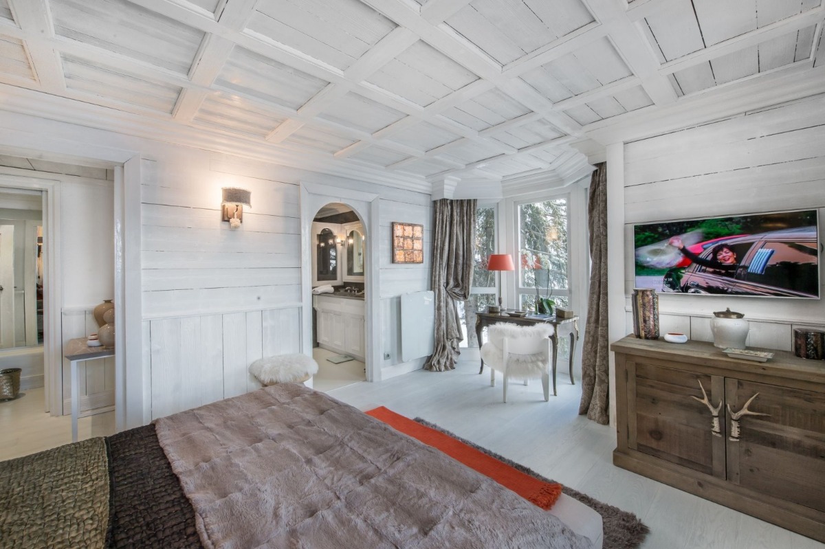 Шесть спален шале оформлены в индивидуальном стиле и расположены на трех этажах. На верхнем этаже есть двухместный номер с собственной ванной комнатой и прилегающей зоной отдыха с диваном-кроватью. На первом этаже есть еще четыре спальни, включая назначенные главные апартаменты. Две главные спальни прекрасны и просторны, с гардеробными и роскошными ванными комнатами. В двух дополнительных спальнях на этом этаже есть душевые комнаты и двуспальные/две односпальные кровати для гибкости. Последняя спальня находится на первом этаже, она немного меньше и подходит для детей, подростков или персонала.