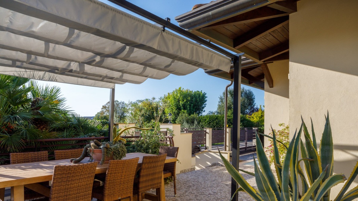 Огороженная собственность имеет внешнее развитие на двух уровнях и характеризуется небольшой площадью газона и декоративных растений в зоне солярия бассейна, которая составляет около 60 м2. По всему дому проходит большой балкон террасного типа, где мы находим беседку, под которой находится красивый стол, подходящий для обедов и ужинов с друзьями. На балконе мы также находим стол для пинг-понга. Рядом с бассейном расположена крытая веранда с летней кухней, оборудованной дровяной печью и плитой, фритюрницей, льдогенератором и большими рабочими поверхностями. Внутри мы также находим большой стол, идеально подходящий для ужинов у бассейна. От входа вы можете получить доступ к гаражу, где вы можете с комфортом припарковать до 3 автомобилей (2 небольших).