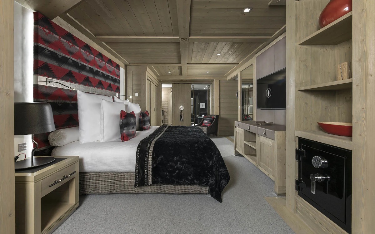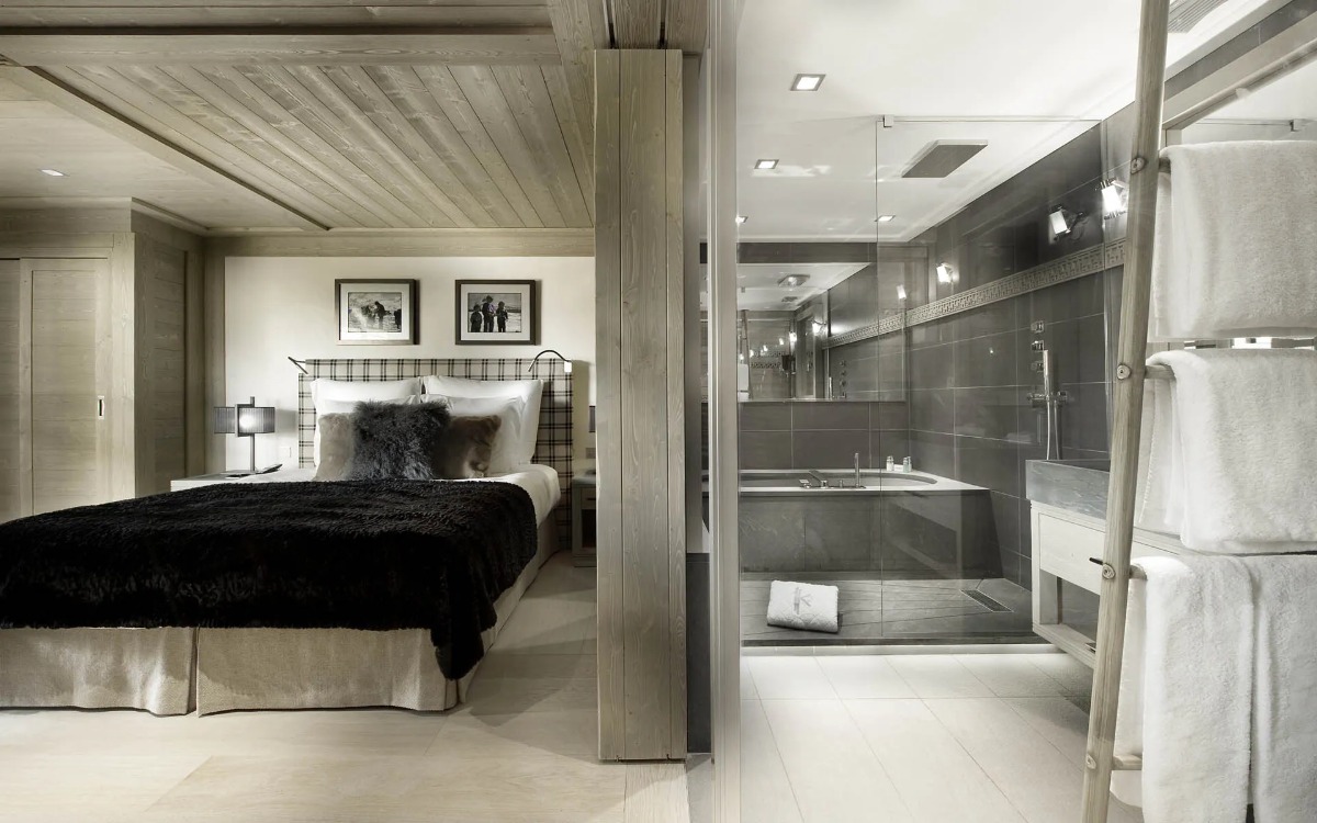 Всего в шале имеется пять спален, в которых могут разместиться до 10 гостей. Четыре из этих спален с двуспальными кроватями расположены на втором этаже шале. Это элегантные альпийские пространства с роскошными кроватями, открытой деревянной отделкой и роскошными ванными комнатами с душевой кабиной и ванной. Все эти спальни имеют общий балкон с видом на склон и горы. Последняя спальня занимает мезонин над гостиной, с собственным балконом, гардеробной и полной конфиденциальностью от остальной части вашей группы.