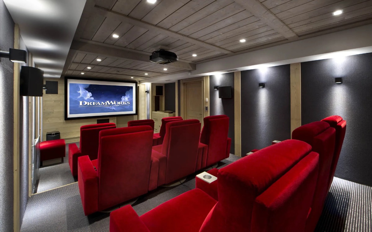 На этом спа-этаже также расположен сделанный на заказ кинозал шале. Благодаря 9 сиденьям с откидной спинкой, расположенным ярусами, обеспечивающим лучший обзор на большом экране, а также новейшим технологиям, включая проектор и звуковую систему, это идеальное место, чтобы насладиться вечерним кино вместе в группе.