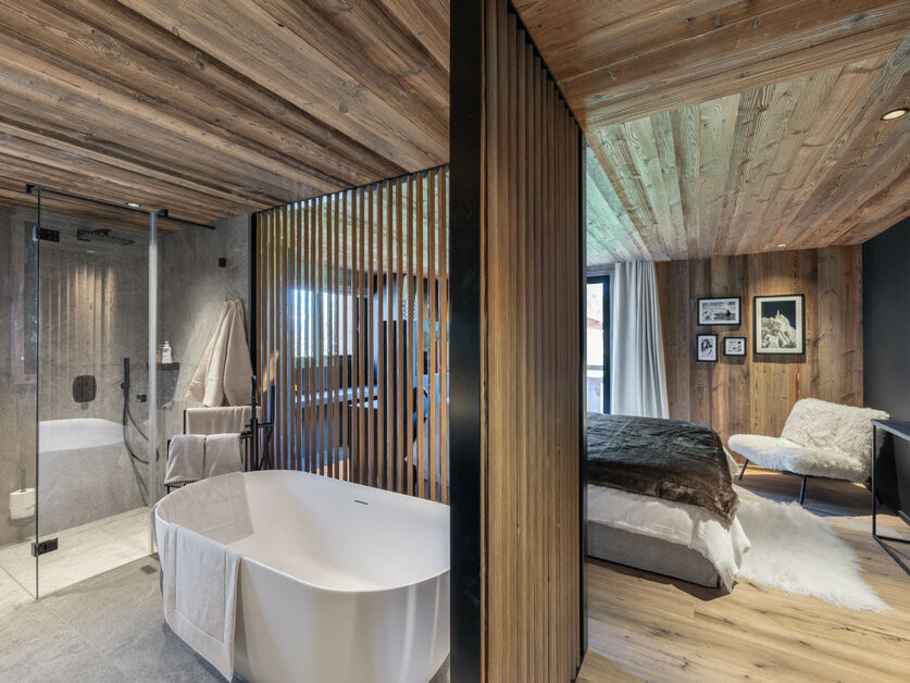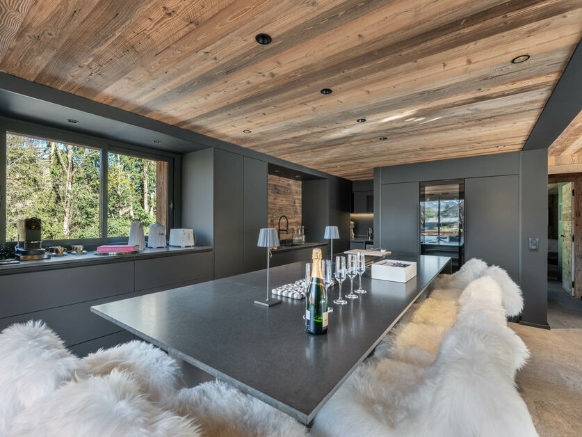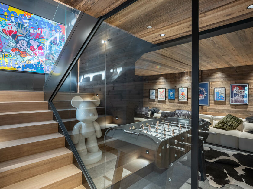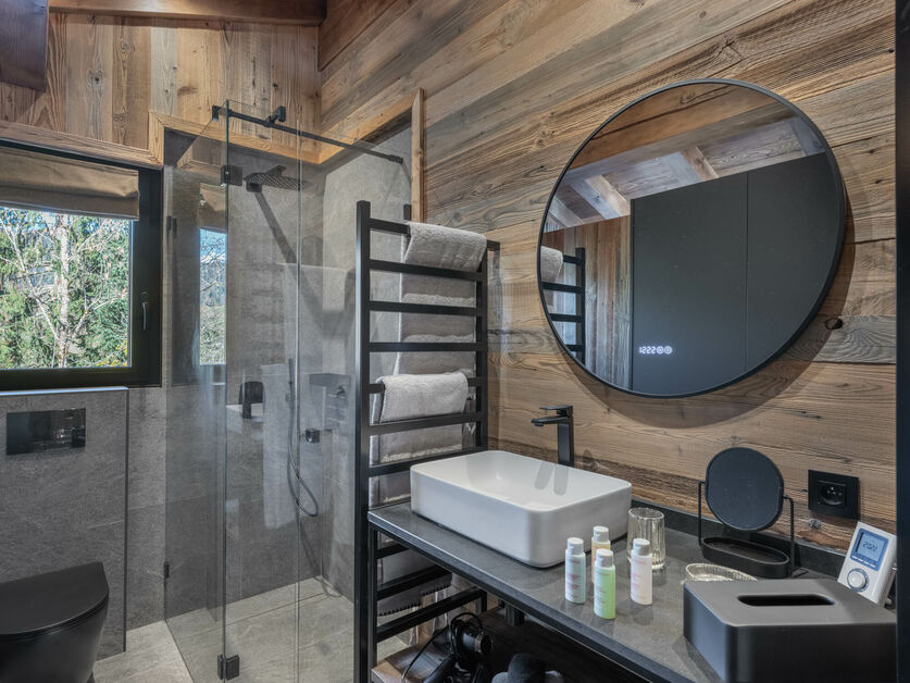 До лыжной трассы 800 метров До подъемника 800 метров До магазина 1100 метров До ресторана 800 метров До города Megeve 1 километров До аэропорта Geneve 70 километров Рекомендован автомобиль Шале состоит: - гостиная - столовая - гостиная, совмещенная со столовой - отдельная кухня Спальни 5 - с двуспальной кроватью 4 - с двухэтажной кроватью 1 - дополнительная кровать 2 Кол-во ванных комнат 5 - душевая кабина, умывальник, WC - 3 - ванна, умывальник, WC - 2 - сауна - сушильный шкаф В шале есть: Отопление/охлаждение объекта - Камин - Электрическое отопление - Печное отопление Мультимедиа - ТВ (количество телевизоров) 2 - Stereo система - Домашний кинотеатр - Радио Кухня - Посуда, столовые приборы, проч. - Холодильник - Микроволновая печь - Стиральная машина - Посудомоечная машина - Утюг и гладильная доска - Кофеварка - Электрочайник - Тостер Коммуникации - WI-FI Аксессуары для детей - Детская кроватка - Детская кроватка по запросу - Детский стульчик Проживание с домашними животными - по запросу Территория: - Парковка на количество машин 2 - Терраса - Садовая мебель - Бассейн с подогревом - Шезлонги Краткое описание: Новое шале площадью 300 м² в 800 метрах от подъемников Рошбрюн. Это новое шале на 12 человек покорит вас светлой гостиной, оздоровительным центром с бассейном, сауной и кинозалом. Состоит из 4 спален с двуспальными кроватями и 1 детской спальни (с 4 односпальными кроватями). Здесь могут с комфортом разместиться 8 взрослых и 4 детей.