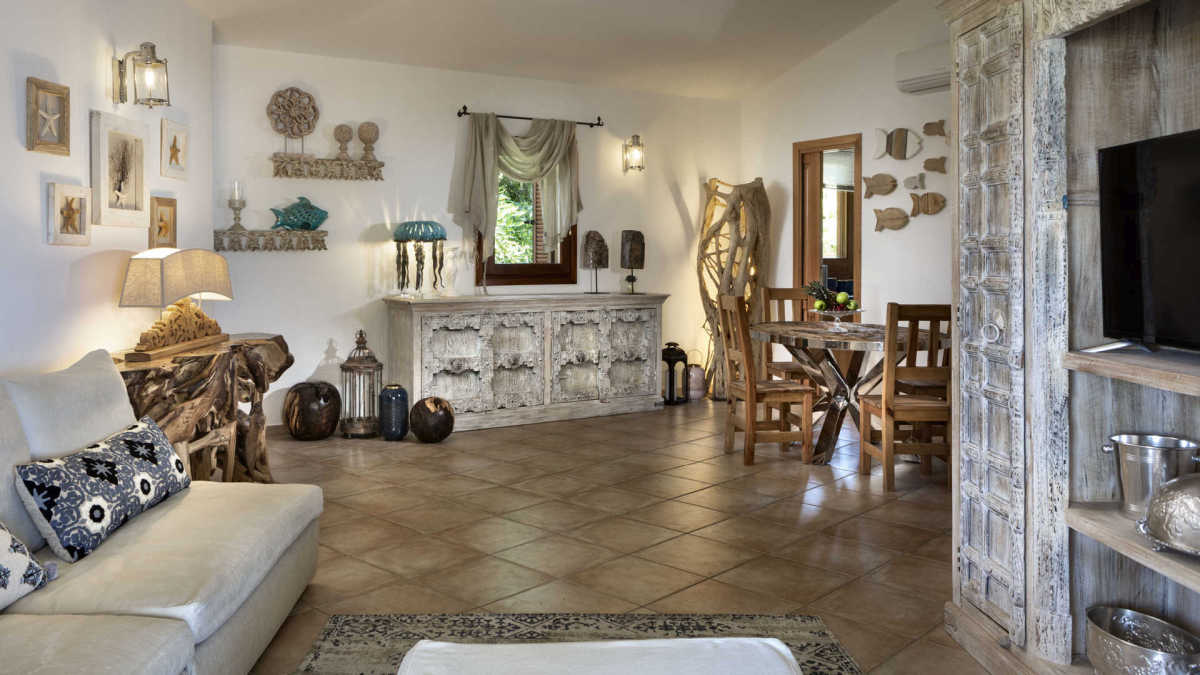 Элегантная меблированная крытая терраса с видом на ухоженный частный сад создаёт идиллическую атмосферу для незабываемого отдыха. Удобные кресла и обеденные зоны на открытом воздухе делают её идеальным местом для трапезы на свежем воздухе или просто отдыха, любуясь очаровательными окрестностями. Кроме того, эта вилла расположена в привилегированном месте, всего в нескольких шагах от самых красивых пляжей северной Сардинии!