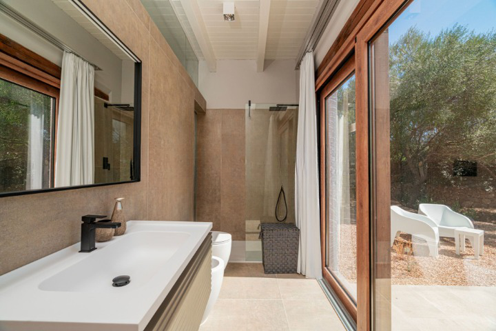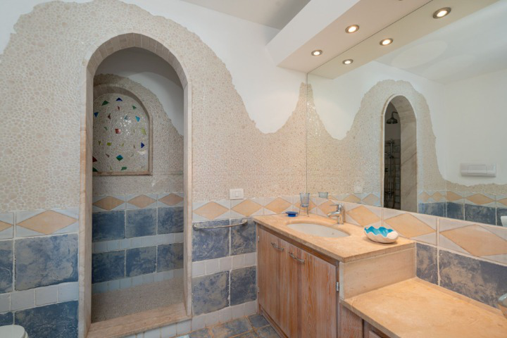 ГЛАВНОЕ ЗДАНИЕ: расположенное между первым и вторым этажами, плюс цокольная зона обслуживания, эта часть виллы предлагает просторные помещения открытой планировки, ярко освещенные благодаря большим окнам с видом на море с одной стороны и на бассейн с другой. Спальная зона включает четыре спальни (четырехместную, трёхместную, двухместную и одноместную, примыкающую к двухместной) и три ванные комнаты (по одной в каждой спальне, кроме прилегающей одноместной). Гостиная зона включает несколько отдельных обеденных зон (с видом на бассейн и на море), полностью оборудованную кухню с кладовой и дополнительную гостевую ванную комнату. На втором этаже также расположена большая, частично крытая терраса с великолепным панорамным видом на море. Ухоженный сад окружает бассейн, соединяя обе жилые зоны.