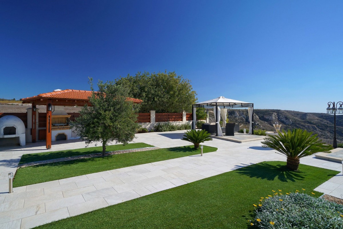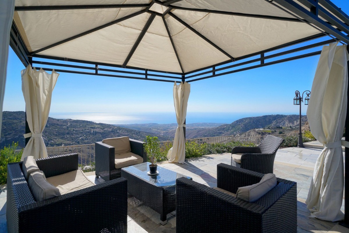 Меблированная терраса с кирпичным барбекю и традиционной греческой печью позволит вам по-настоящему насладиться трапезой на свежем воздухе, любуясь потрясающими видами!