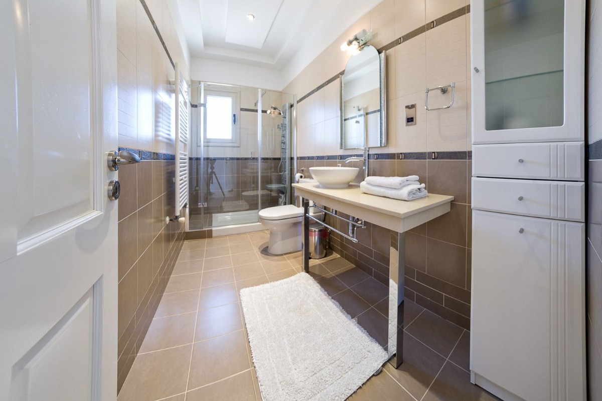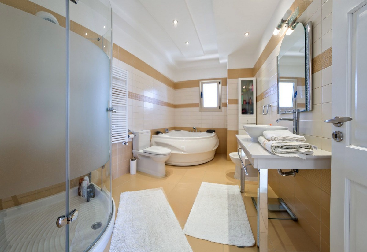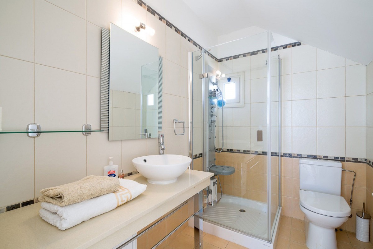 Из гостиной широкая мраморная лестница ведёт на второй этаж, где расположены первые три спальни этой великолепной виллы: главная спальня с двуспальной кроватью и ванной комнатой с душевой кабиной, вторая спальня с двуспальной кроватью и ванной комнатой, а также ещё одна спальня с двуспальной кроватью и душевой комнатой. Все три спальни имеют собственные балконы с видом на побережье и окружающую сельскую местность. Главная спальня также имеет отдельный доступ по лестнице, ведущей на террасу и к бассейну.