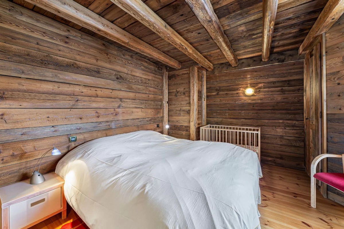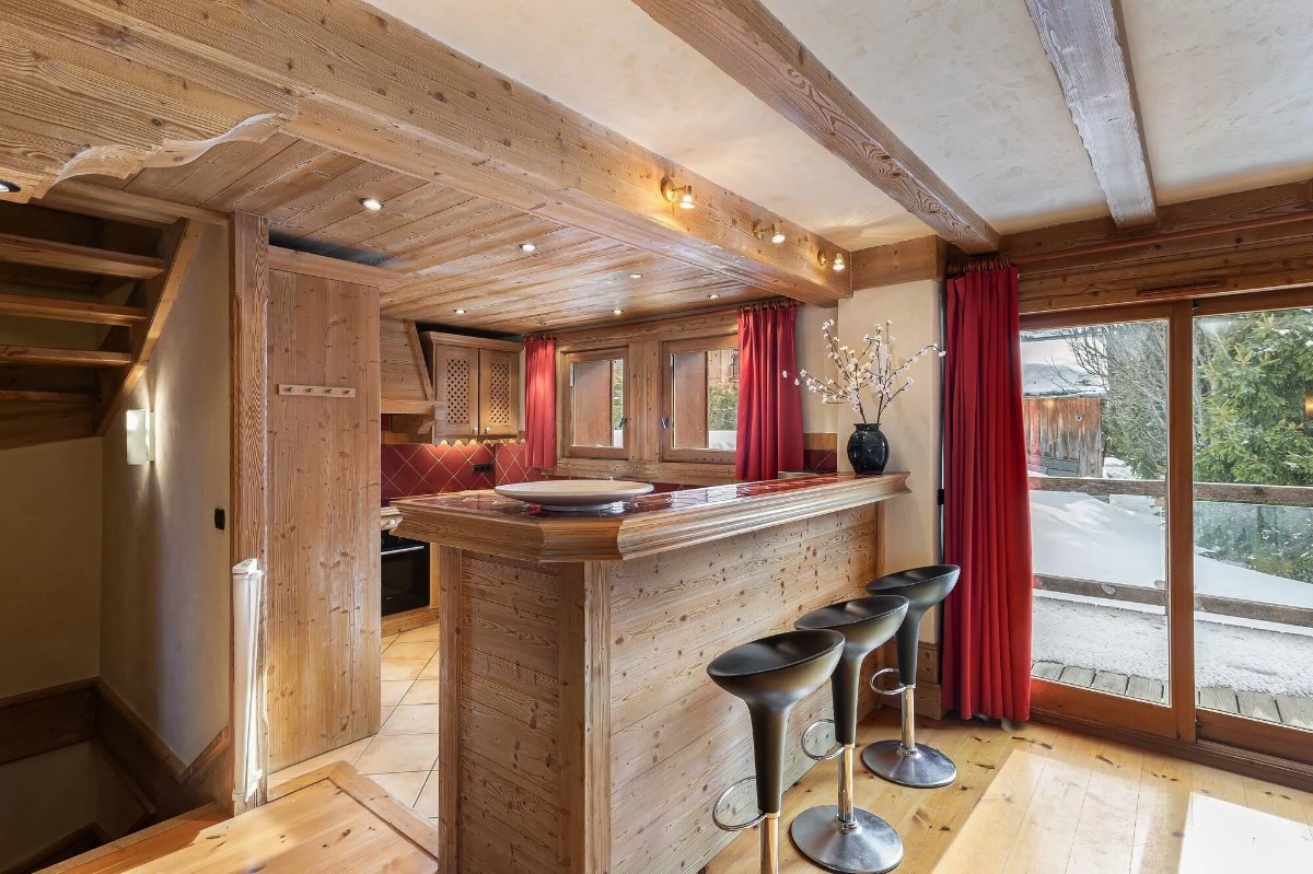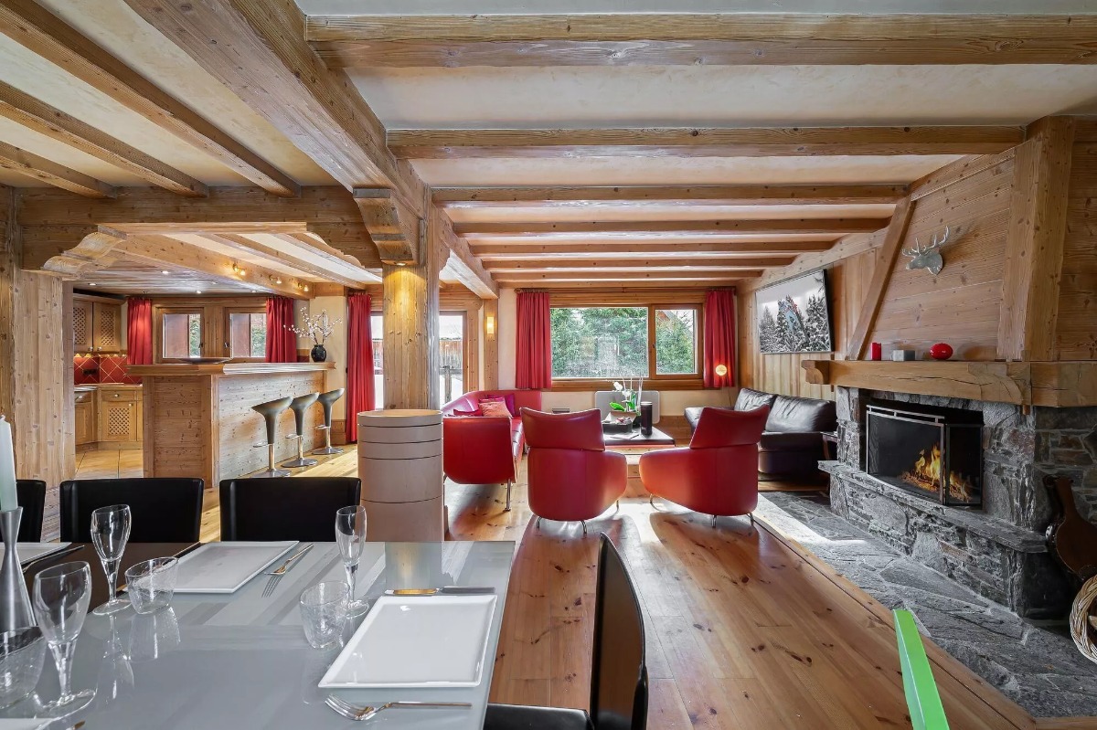 Шале выполнено в типичном савойском стиле с преобладанием дерева, от паркета до открытых потолочных балок. Цветовые акценты, например, в мебели гостиной, спальнях и ванных комнатах, привносят в шале тепло и заряжают энергией. Камин в гостиной создаёт настоящую зону отдыха, идеально подходящую для отдыха с семьёй или друзьями.
