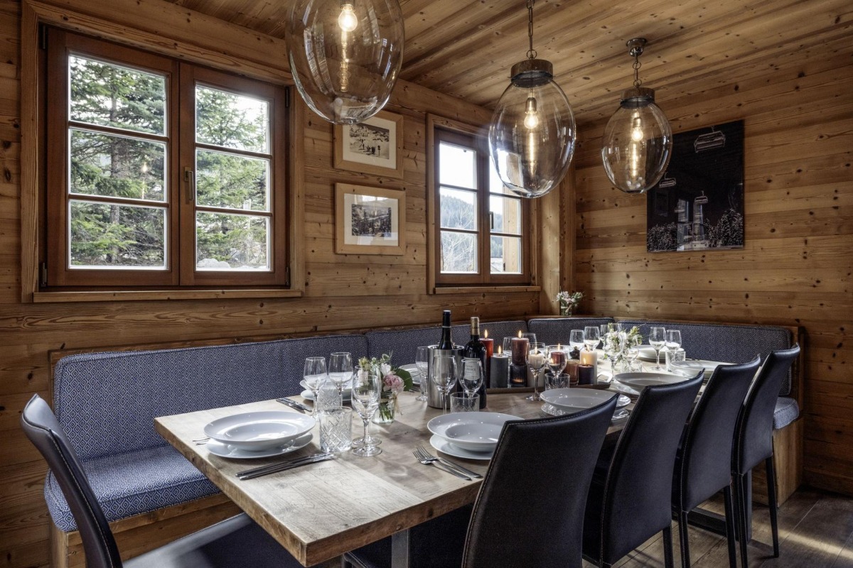 В самом сердце шале расположена впечатляющая гостиная открытой планировки с окнами на две стороны, где вы сможете отдохнуть всей компанией. В конце дня все двенадцать гостей могут собраться у потрескивающего стеклянного камина, а затем отправиться в обеденную зону, чтобы насладиться вкусным ужином. Шале идеально подходит тем, кто ищет дом с истинно альпийской атмосферой, ведь оно сочетает в себе роскошь и традиционные альпийские элементы.
