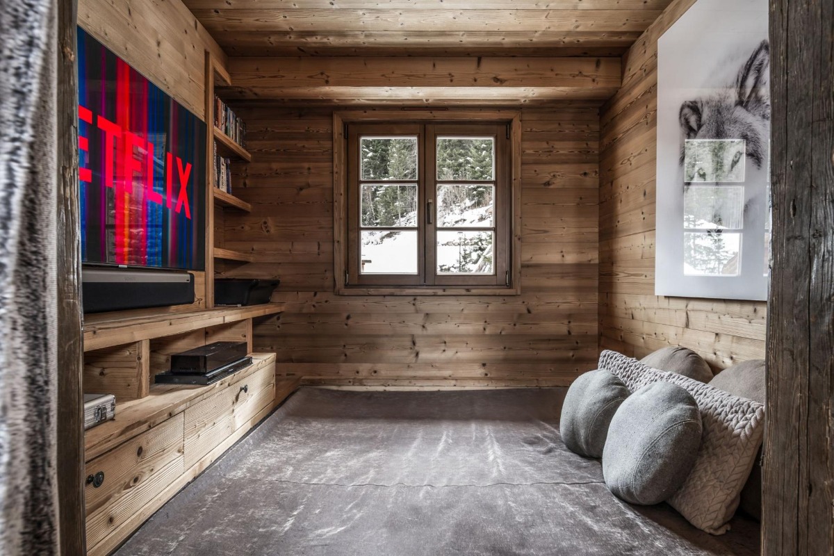 Из гостиной открытой планировки открывается великолепный панорамный балкон — идеальное место, чтобы насладиться утренним кофе и наблюдать за оживлением курорта. Отдельно от основной гостиной находится ТВ-зал, где юные гости могут насладиться игрой или фильмом. Благодаря наличию нескольких уютных уголков по всему шале, малыши смогут отдохнуть и насладиться бесконечными часами развлечений.