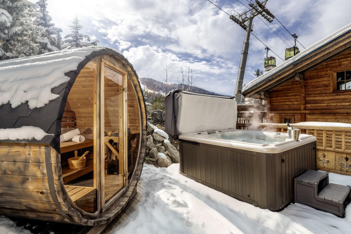 Пока вы ждете свой восхитительный ужин, расслабьте уставшие после катания на лыжах ноги в открытой гидромассажной ванне с видом на горы или в бочковой сауне — в обе зоны можно попасть из общественных помещений шале.