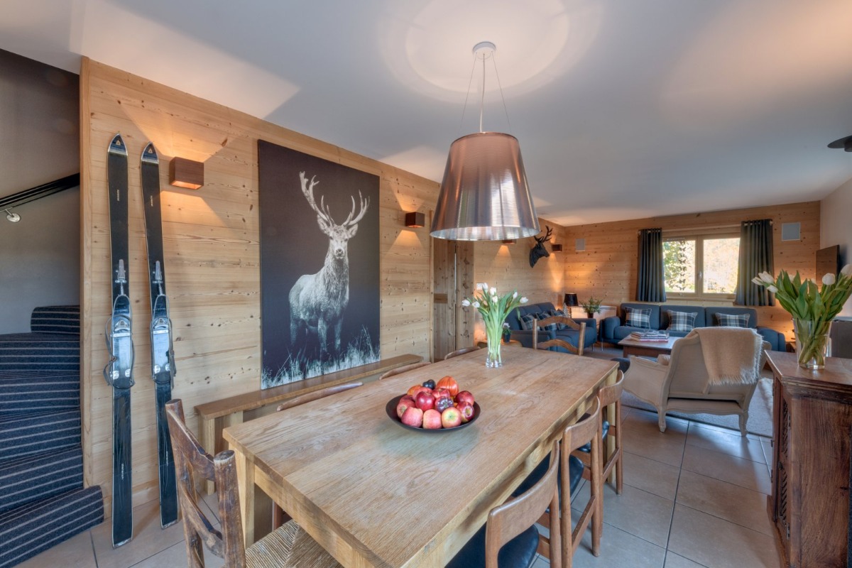 Шале предлагает собственную кухню, сочетает в себе роскошную современную обстановку и аутентичную архитектуру горного шале. Почувствуйте себя как дома в просторной гостиной открытой планировки с непревзойденным видом на юг и Ле-Же.