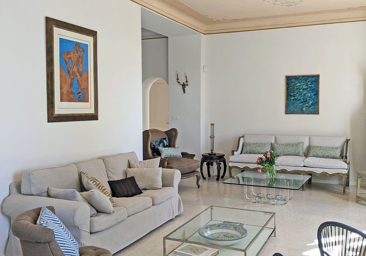 Интерьеры залиты естественным светом и оформлены в современном эклектичном прибрежном стиле с яркими цветовыми акцентами и местными произведениями искусства. Главный дом занимает два этажа. На первом этаже находятся просторная гостиная и столовая, выходящие на большую террасу с видом на бассейн и море. Полностью оборудованная кухня и туалет завершают этот этаж. На втором этаже находится главная спальня с ванной комнатой. Кроме того, здесь есть две уютные спальни с собственными душевыми (отдельный общий туалет находится в коридоре).