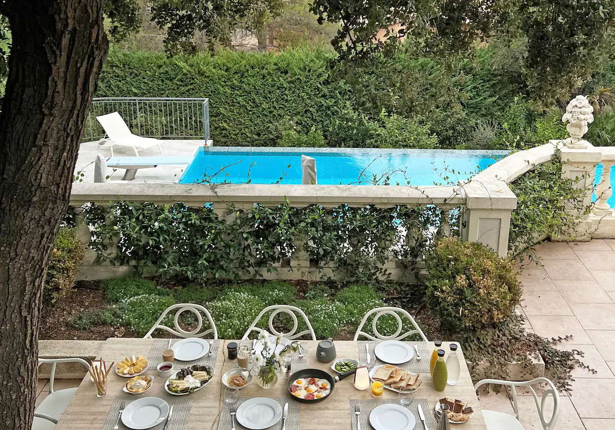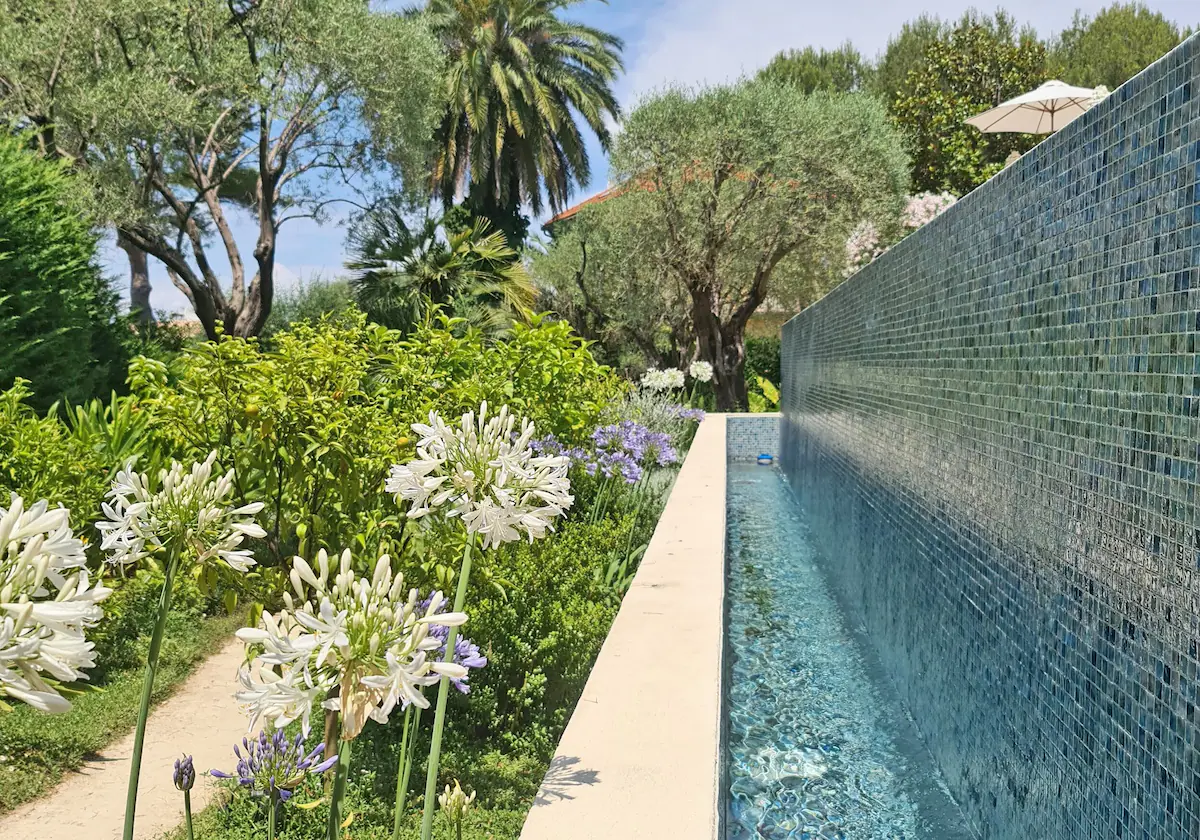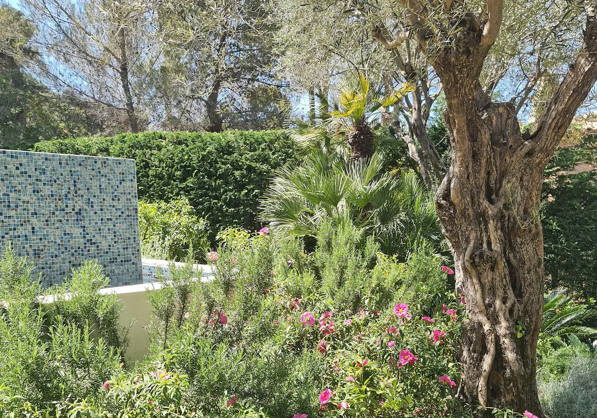 Открытая терраса с видом на бассейн и сад на фоне моря идеально подходит для обедов и развлечений на свежем воздухе. От бассейна ведёт живописная дорожка к площадке для игры в петанк и террасным садам с оливковыми деревьями и местной растительностью, что дополняет атмосферу оазиса этого сказочного места отдыха. Большой пейзажный бассейн с трамплином окружён удобными шезлонгами, идеально подходящими для отдыха гостей.