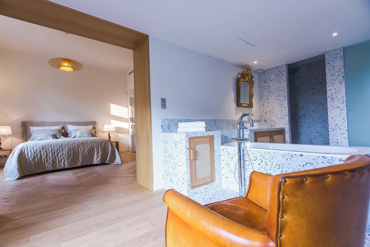 Рядом с главным домом находится гостевой коттедж с уютной спальней с собственной ванной комнатой и балконом с видом на бассейн и море. На уровне сада расположены две дополнительные спальни с отдельным входом. Одна из этих спален имеет собственную ванную комнату, а вторая — небольшую ванную комнату в стиле «лодки» с душем и туалетом, идеально подходящую для подростков или персонала.