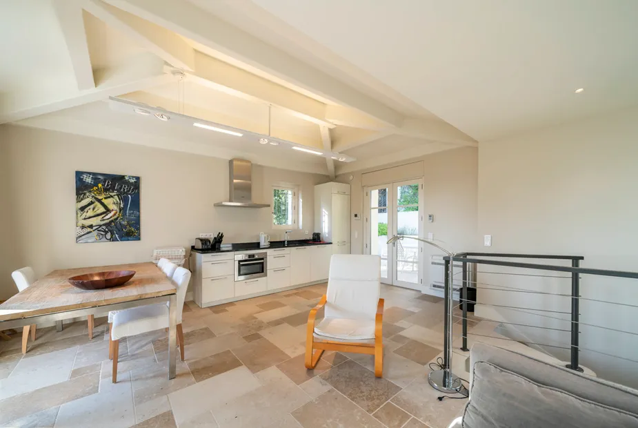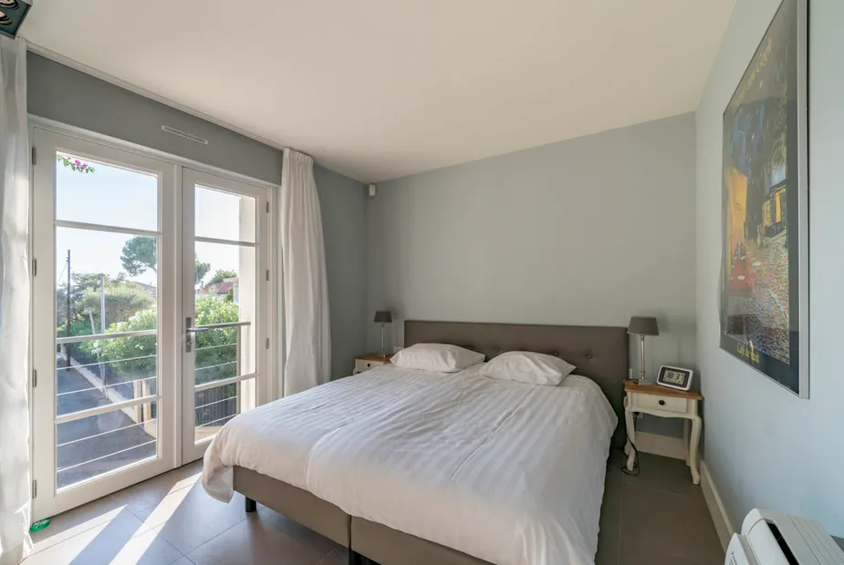 Прогулка по тихому переулку приведёт вас к морю всего за пару минут. Здесь расположена марина с пришвартованными лодками, а чуть дальше — небольшой песчаный пляж, школа дайвинга и пункт проката морских каяков. Прогулка вдоль побережья займёт 15–20 минут до центра Жуан-ле-Пен, известного своими ресторанами, пляжными клубами и оживлённой атмосферой.