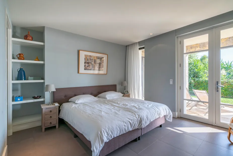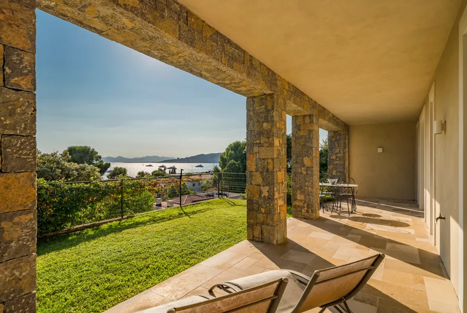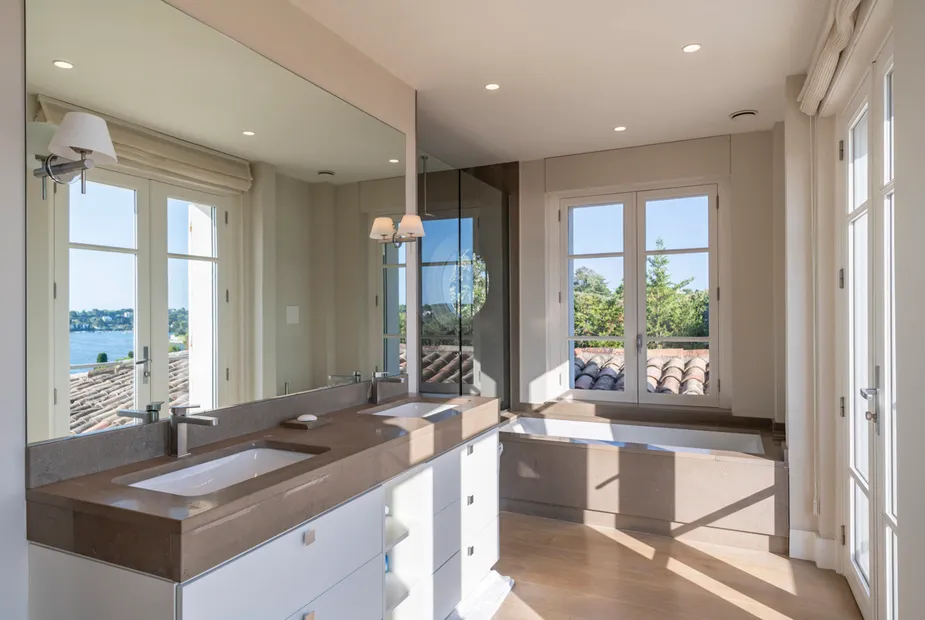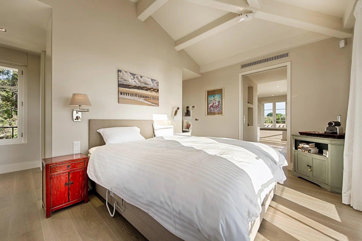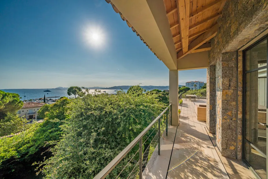 Вилла выстроена на пяти уровнях, и с каждым этажом виды становятся всё более впечатляющими. На верхнем уровне расположена главная спальня — по-настоящему эффектное пространство с собственной гардеробной и ванной комнатой, из которой открывается вид на порт и сверкающее море. Это место, где утро начинается с горизонта, а вечер — с огней побережья.