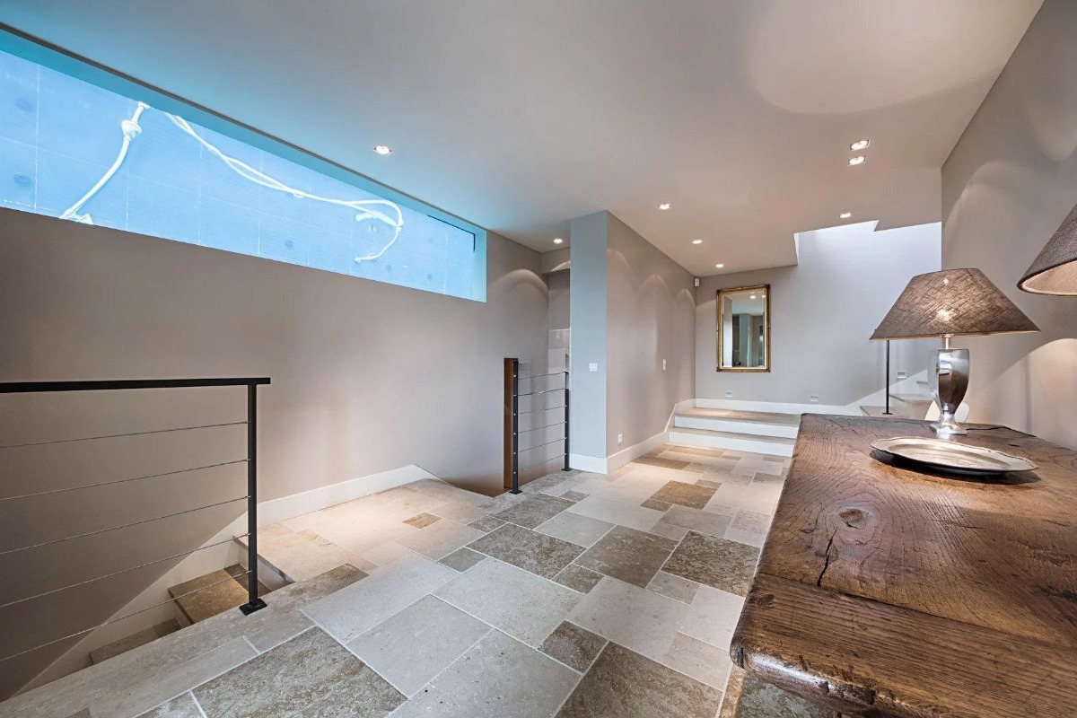 Дом оснащён кондиционированием воздуха, спутниковым телевидением, системой безопасности и лифтом, обслуживающим первые три уровня, что обеспечивает дополнительный комфорт при перемещении между этажами.