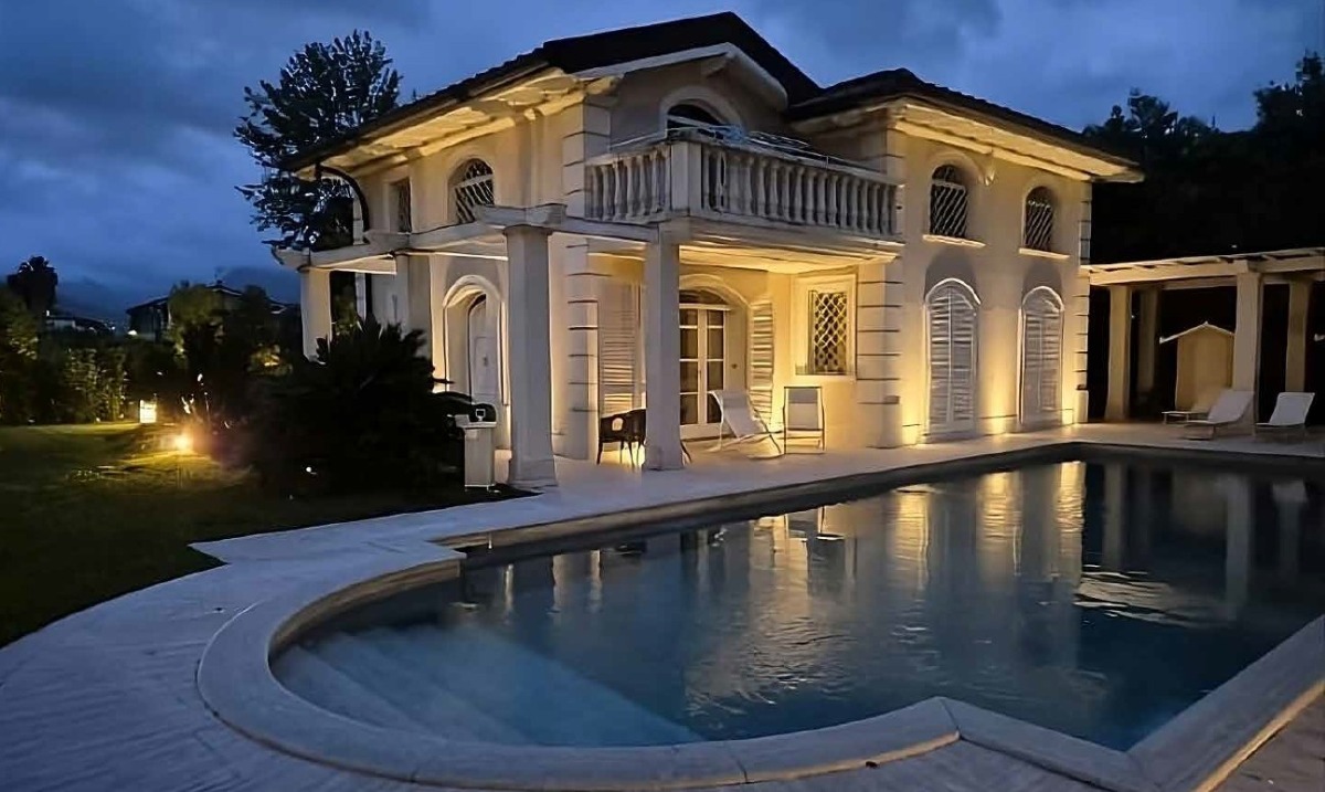 Преимущества: отдых с детьми романтический отдых Расположение: Вилла состоит: - гостиная - столовая - гостиная, совмещенная со столовой - отдельная кухня Спальни 7 - с двуспальной кроватью 5 - с двумя односпальными кроватями 2 Кол-во ванных комнат 8 - душевая кабина, умывальник, WC - 6 - ванна, умывальник, WC - 2 На вилле есть: Отопление/охлаждение объекта - Кондиционеры - Электрическое отопление Мультимедиа - ТВ (количество телевизоров) 2 - Спутниковые каналы - Stereo система - Радио Кухня - Посуда, столовые приборы, проч. - Холодильник - Микроволновая печь - Стиральная машина - Посудомоечная машина - Утюг и гладильная доска - Кофеварка - Электрочайник - Тостер Коммуникации - WI-FI Аксессуары для детей - Детская кроватка по запросу Охранные системы - Сигнализация - Сейф - Видеонаблюдение Проживание с домашними животными - по запросу Территория: - Парковка на количество машин 8 - Сад - Терраса - Садовая мебель - Барбекю - Бассейн - Шезлонги - Зонтик от солнца - Летний душ Краткое описание: Комплекс из двух вилл с парком и бассейном.