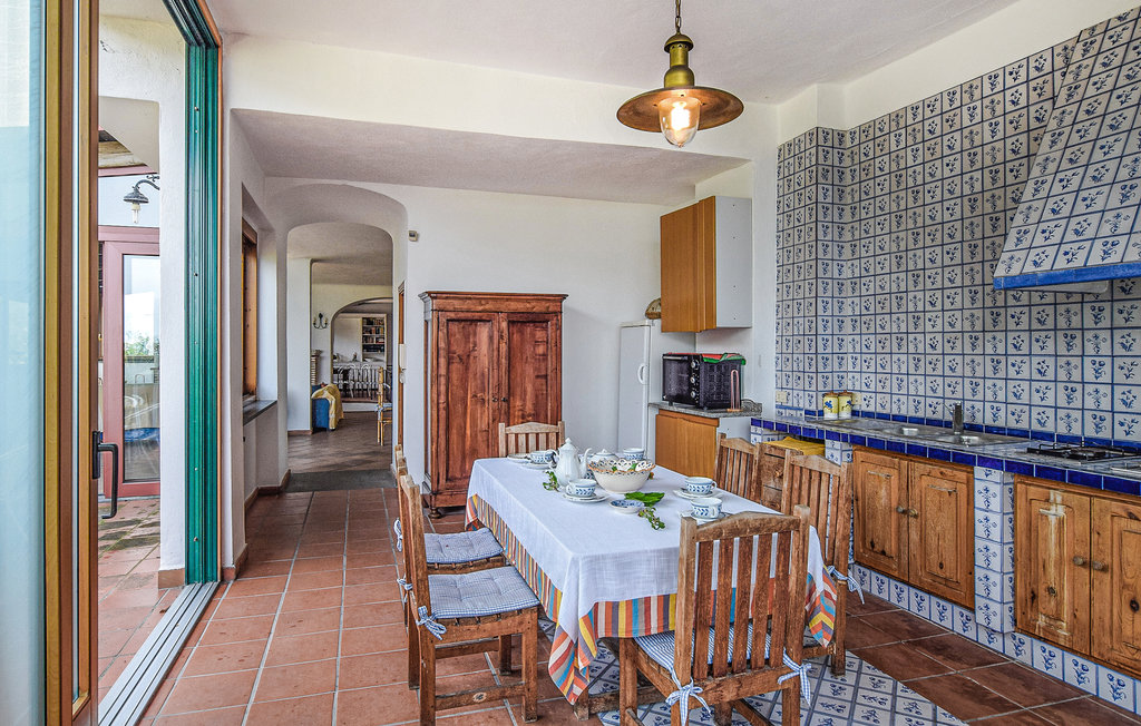 В доме предусмотрены две гостиные зоны, просторная столовая и полностью оборудованная кухня с бытовой техникой, необходимой для длительного проживания.