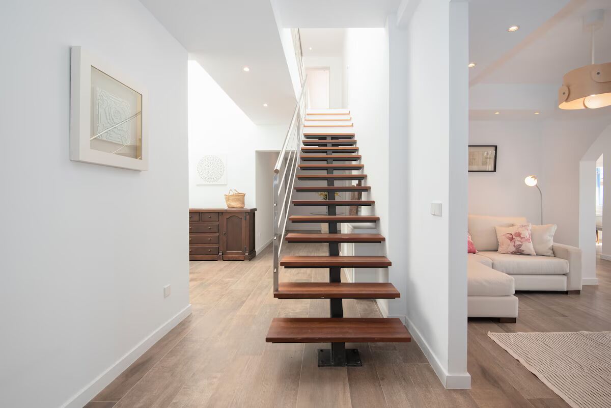 От верхних террас внешняя лестница ведёт к бассейну и в сад.
