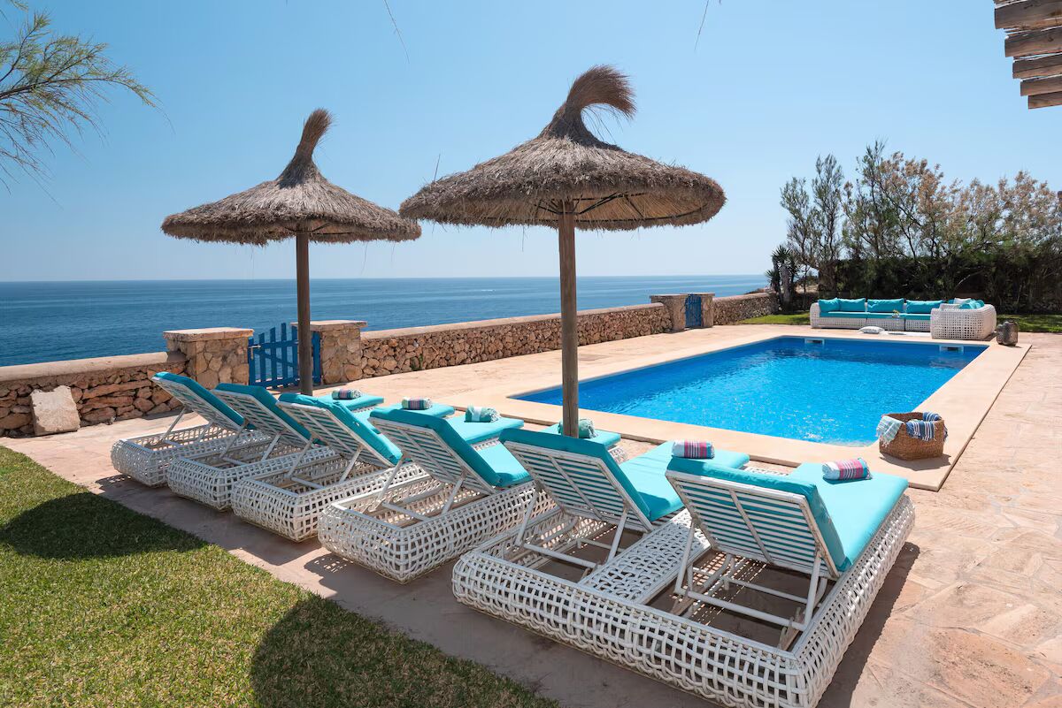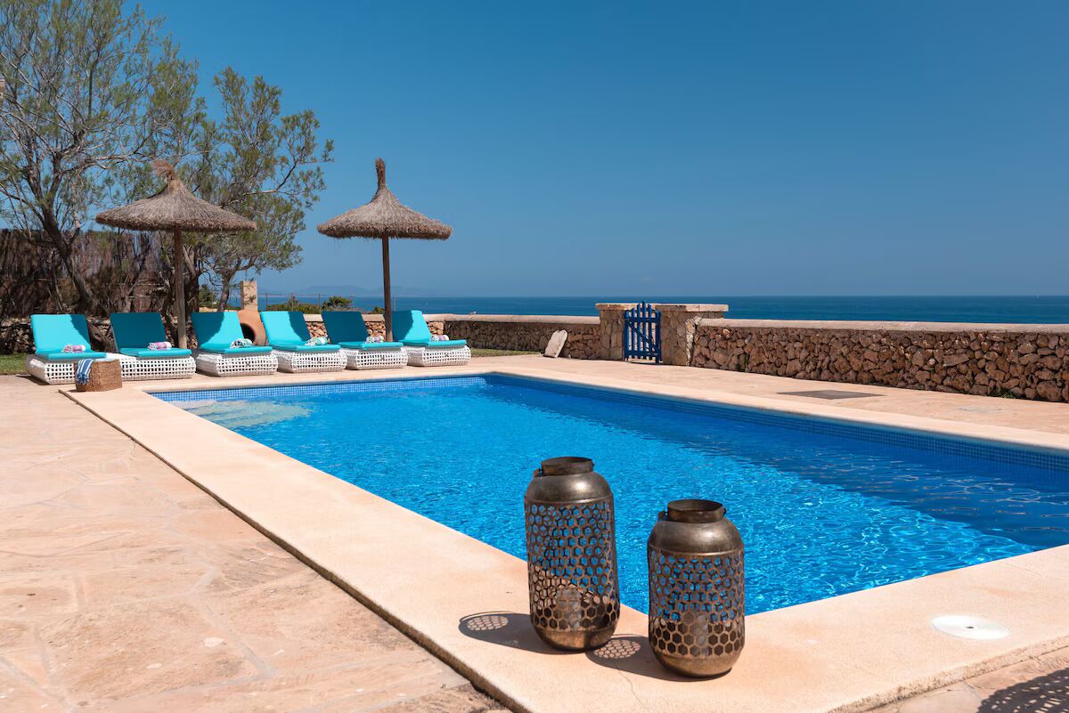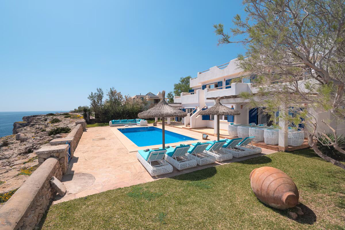 До моря 30 метров До песчаного пляжа 450 метров До магазина 800 метров До ресторана 450 метров До аэропорта Palma de Mallorca 45 километров Вилла состоит: - гостиная - столовая - гостиная, совмещенная со столовой - кухня, совмещенная со столовой Спальни 7 - с двуспальной кроватью 5 - с двумя односпальными кроватями 2 Кол-во ванных комнат 5 - душевая кабина, умывальник, WC - 4 - ванна, умывальник, WC - 1 На вилле есть: Отопление/охлаждение объекта - Кондиционеры - Электрическое отопление Мультимедиа - ТВ (количество телевизоров) 1 Кухня - Посуда, столовые приборы, проч. - Холодильник - Микроволновая печь - Стиральная машина - Посудомоечная машина - Утюг и гладильная доска - Кофеварка - Электрочайник - Тостер Коммуникации - WI-FI Аксессуары для детей - Детская кроватка - Детский стульчик Проживание с домашними животными - по запросу Территория: - Парковка на количество машин 4 - Сад - Терраса - Садовая мебель - Барбекю - Бассейн - Шезлонги - Зонтик от солнца - Летний душ Краткое описание: Просторная современная вилла с бассейном на первой линии от моря в Портоколоме, Майорка!