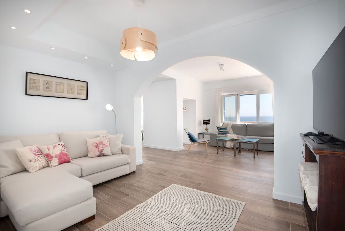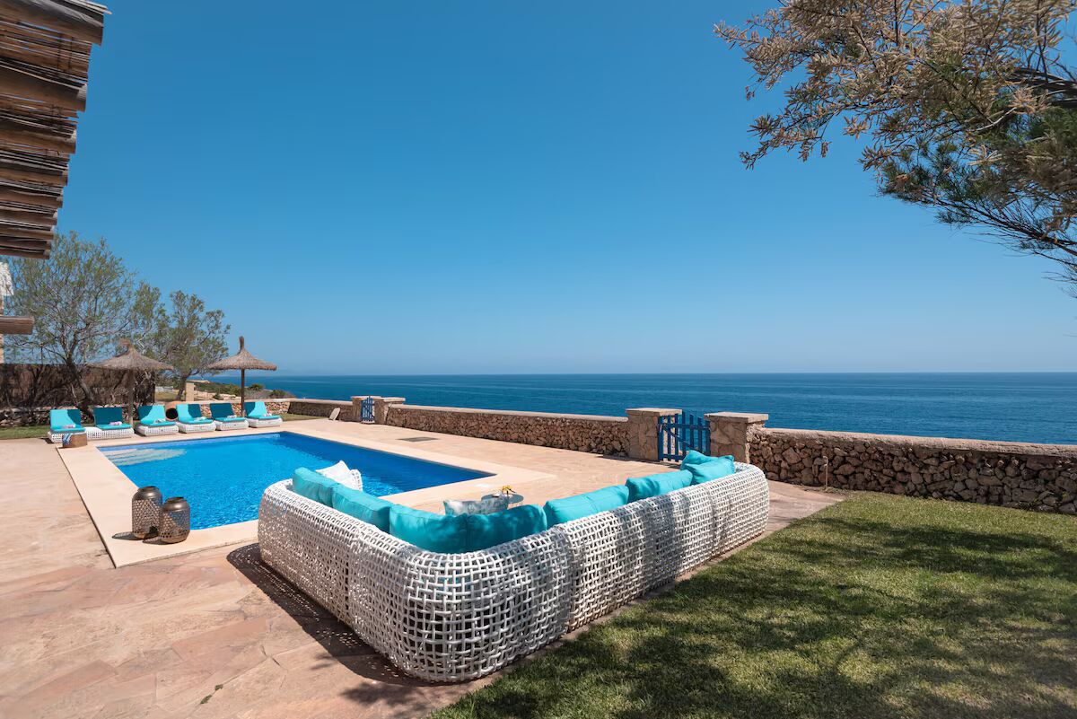Из гостиной и зоны бассейна открываются захватывающие виды на Средиземное море и горизонт.