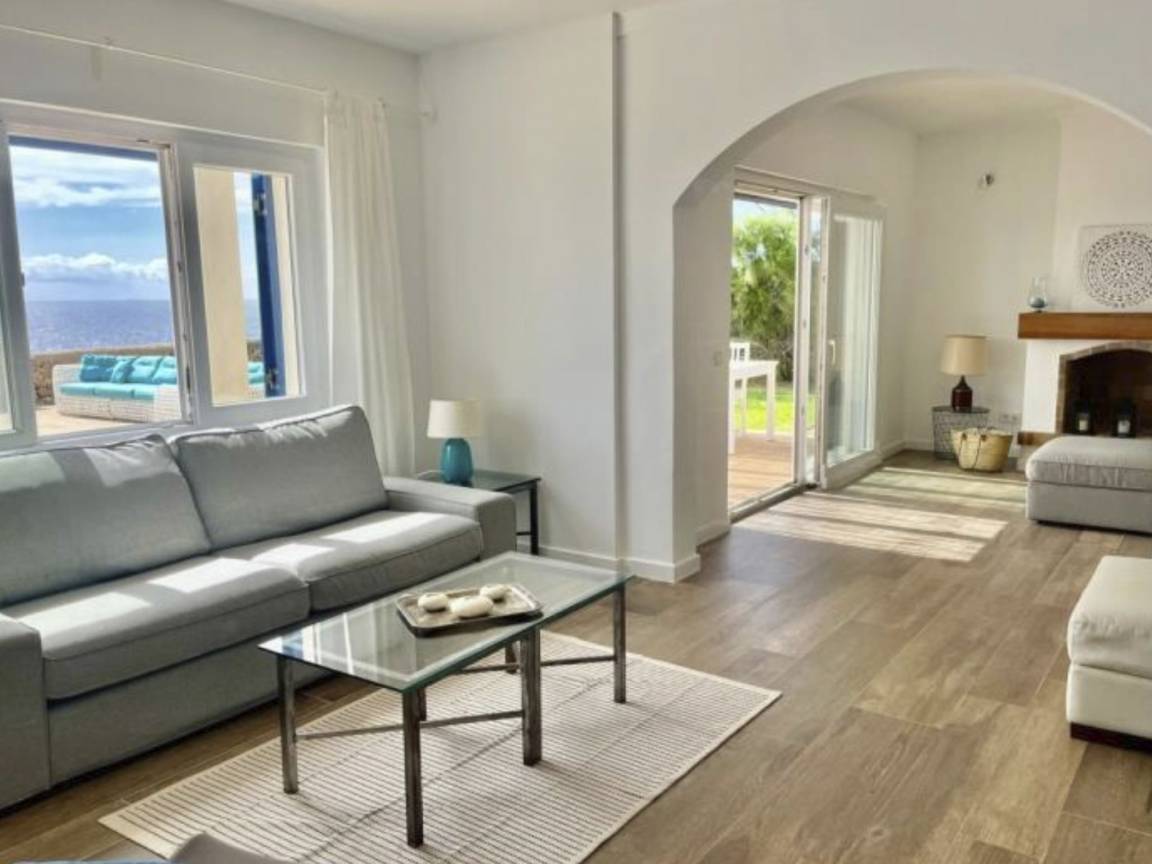 Большие окна и выход на террасу позволяют наслаждаться видом на бассейн и море практически из любой точки основного жилого пространства.