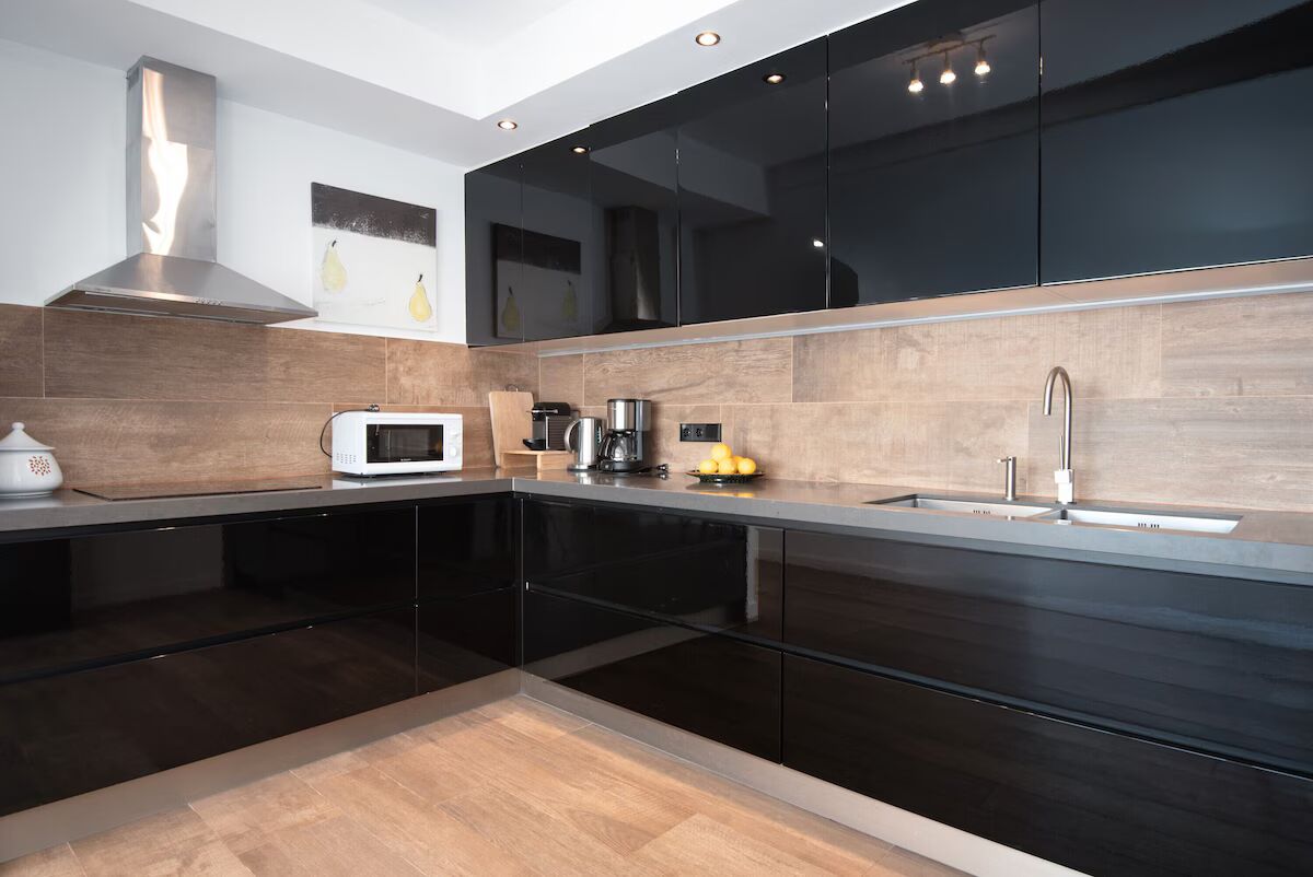 Полностью оборудованную кухню с дополнительной столовой зоной