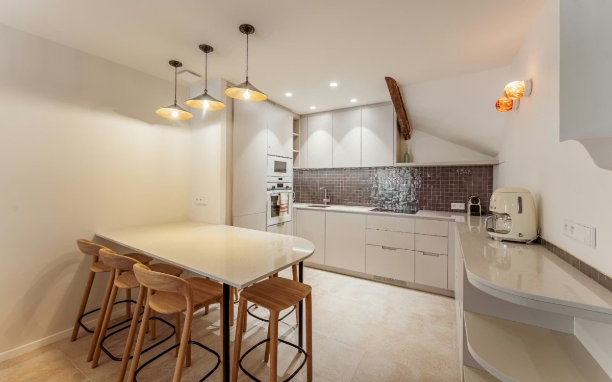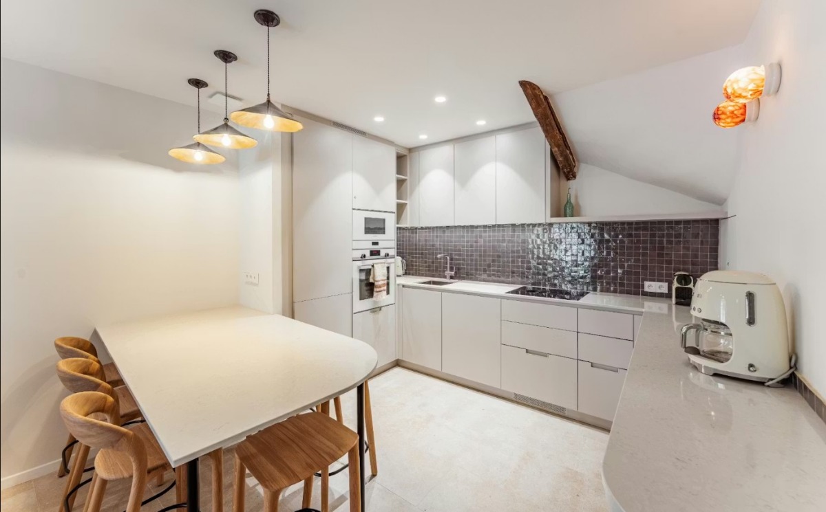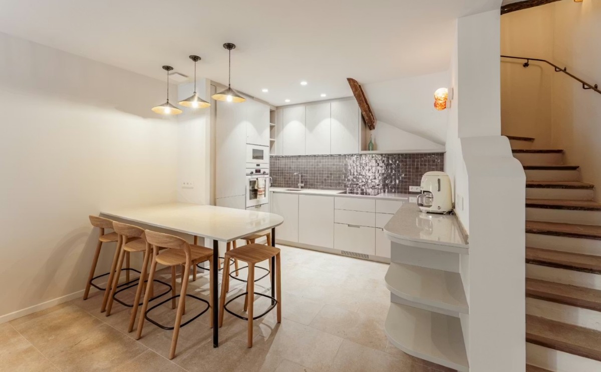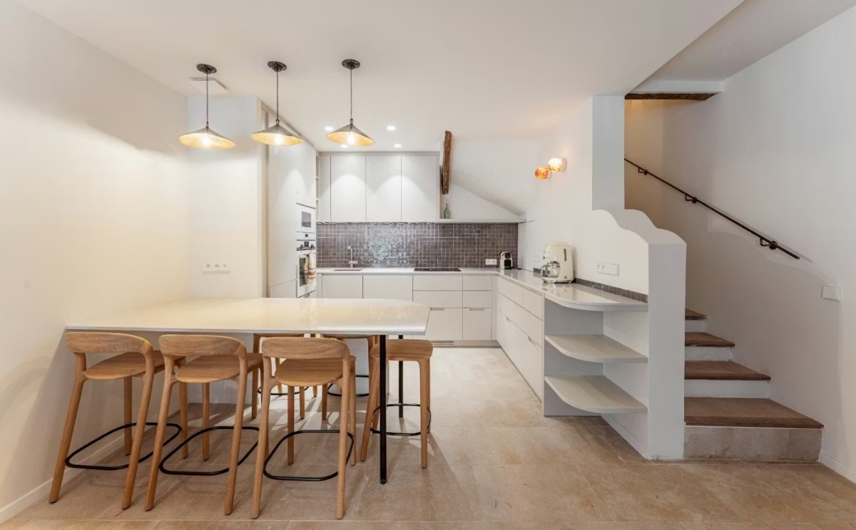 Первый этаж: полностью оборудованная кухня, объединенная с уютной гостиной.