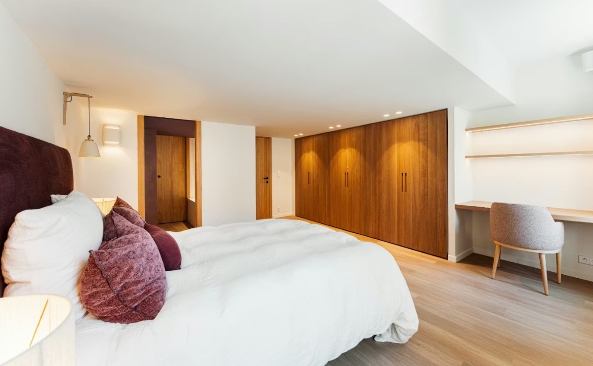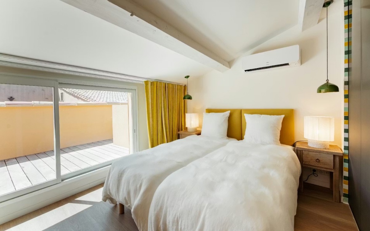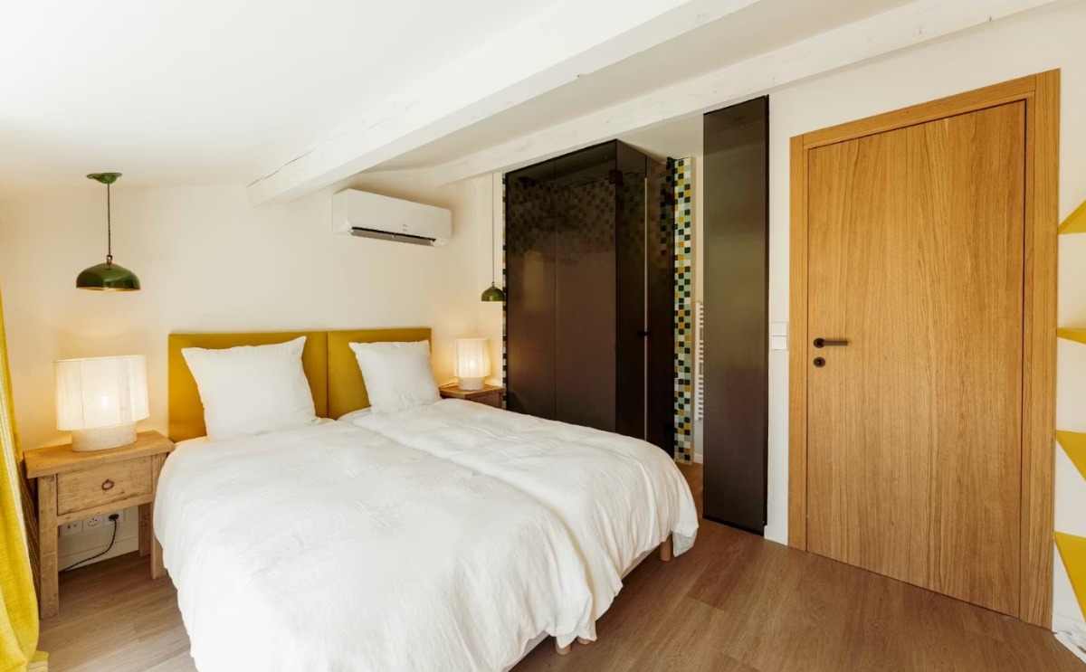 Четвертый этаж: спальня с двумя односпальными кроватями и примыкающей ванной комнатой, идеально подходящая для детей или гостей.