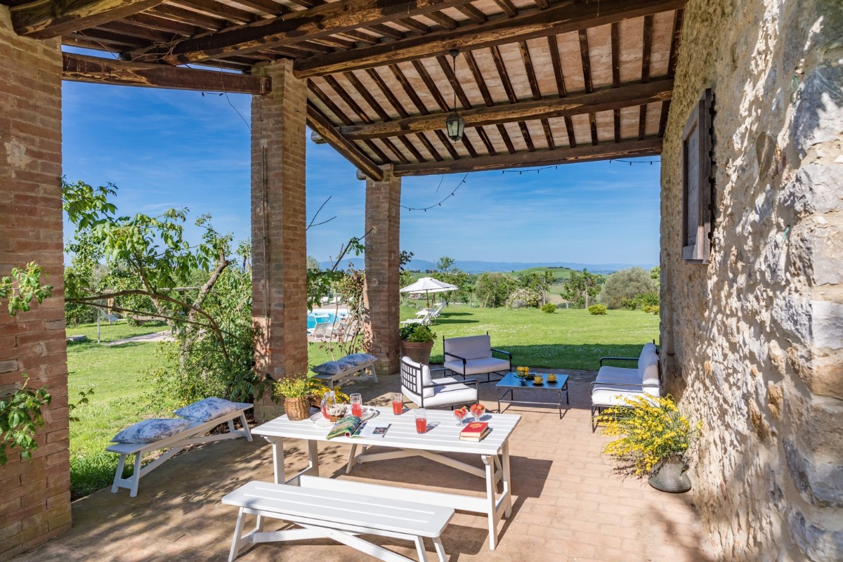 Эта вилла расположена среди холмов между долинами Val di Chiana и Val d’Orcia, рядом с Montefollonico — старинным тосканским борго, сохранившим свою подлинную атмосферу.