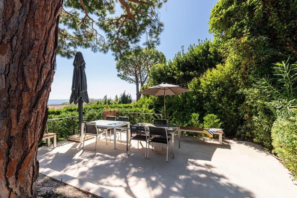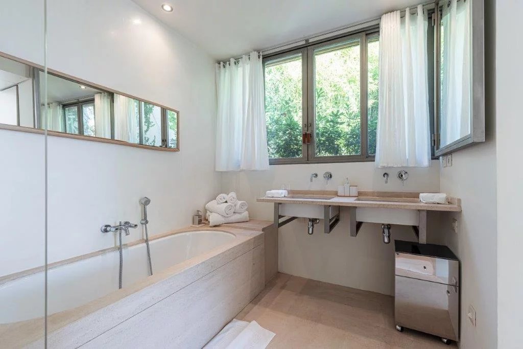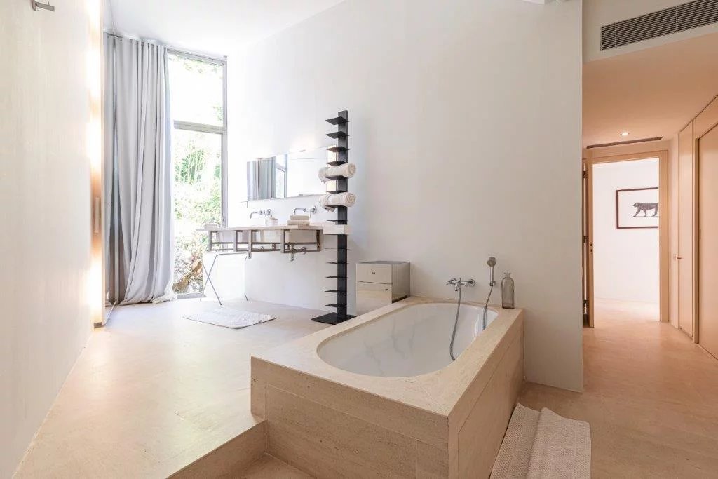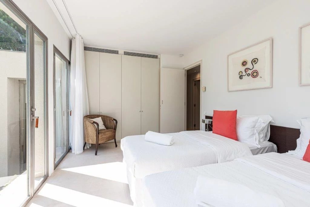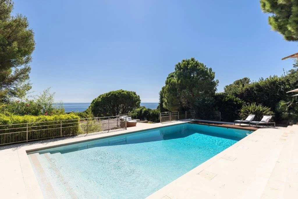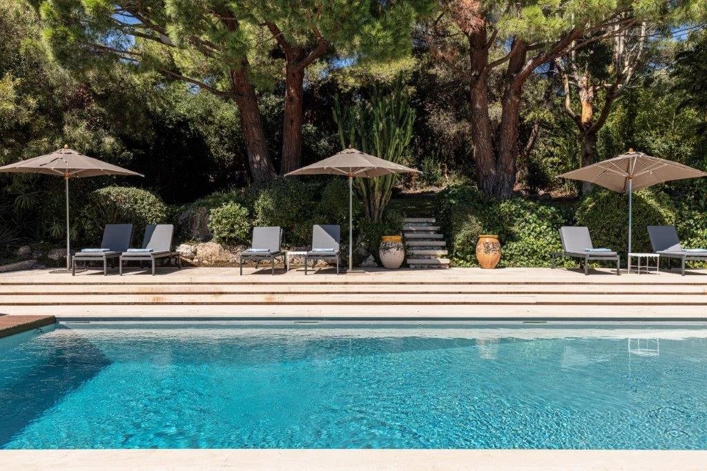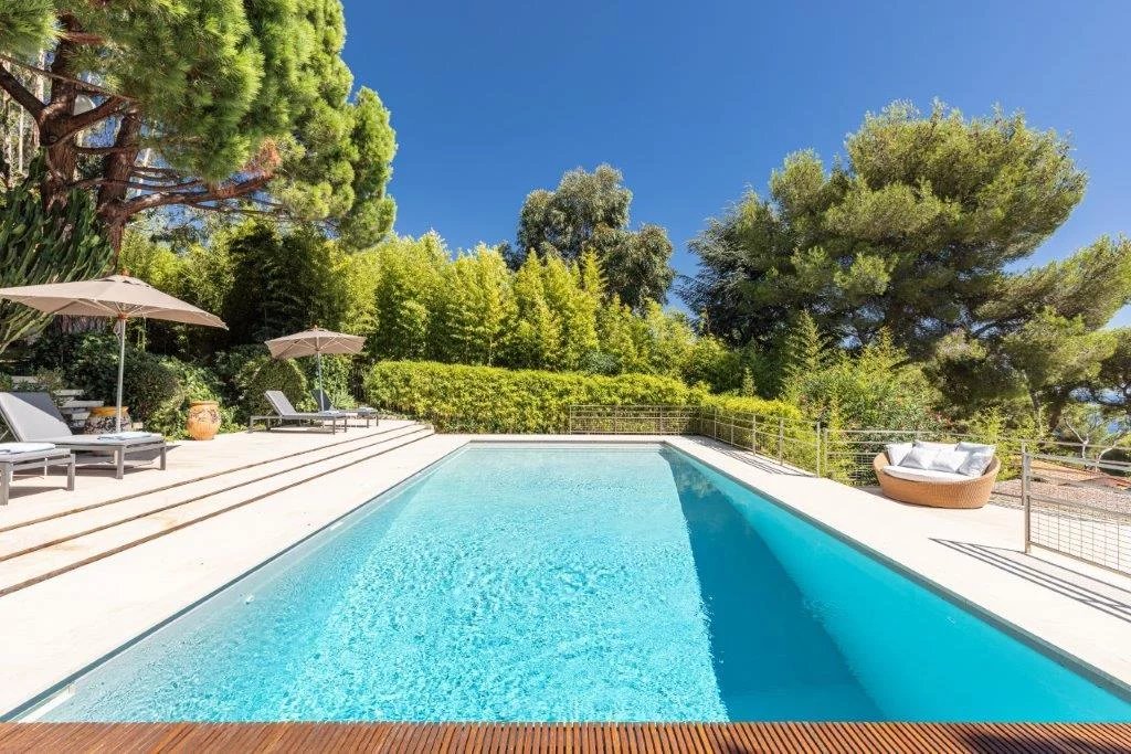 Занимая около 250 м² изысканного жилого пространства на участке площадью 3600 м², эта вилла включает в себя пять просторных спален, каждая со своей ванной комнатой, и большую гостиную-столовую открытой планировки, соединенную с современной, полностью оборудованной кухней. Большие стеклянные двери пропускают естественный свет и открывают потрясающие виды на юго-восток, где виден знаменитый отель Four Seasons Grand Hotel du Cap-Ferrat.