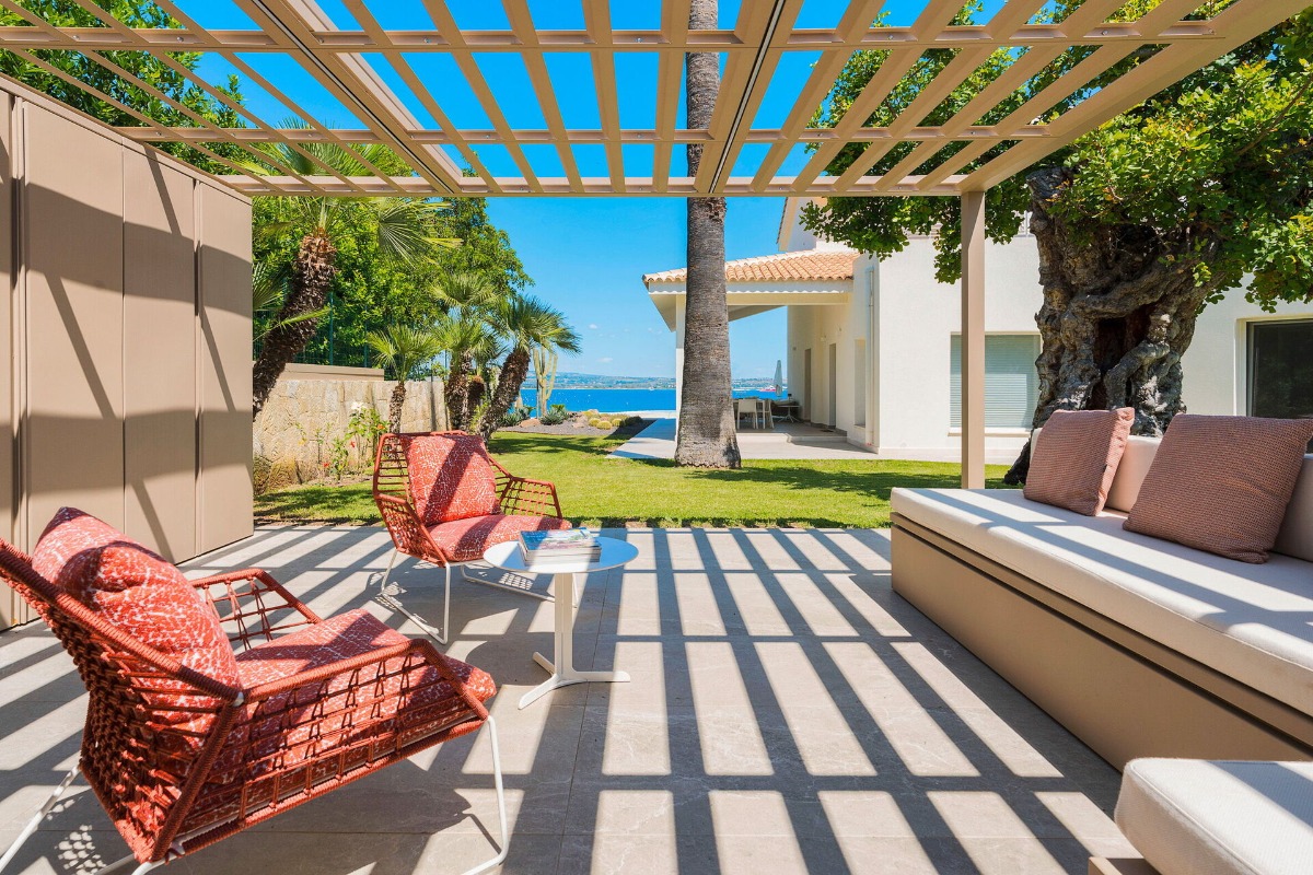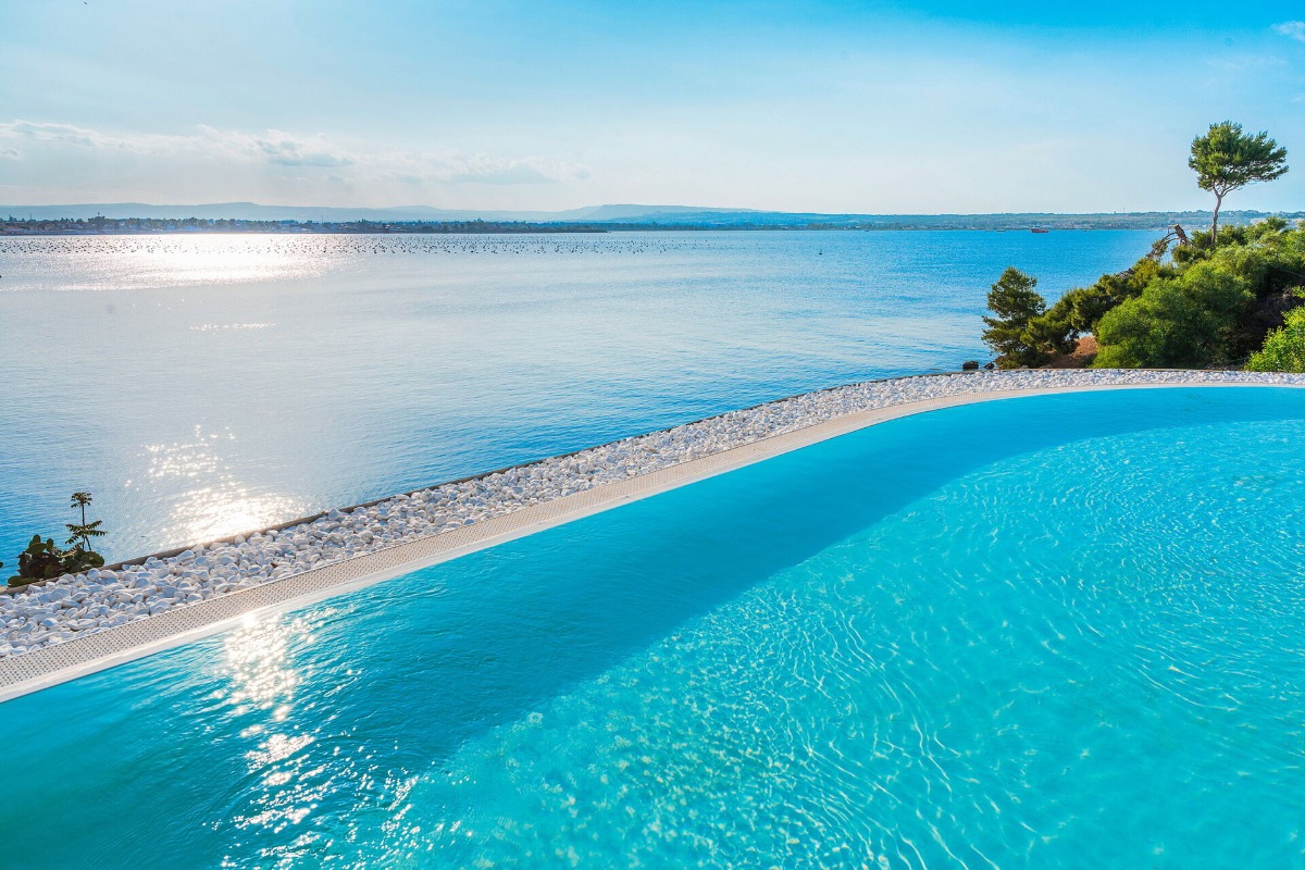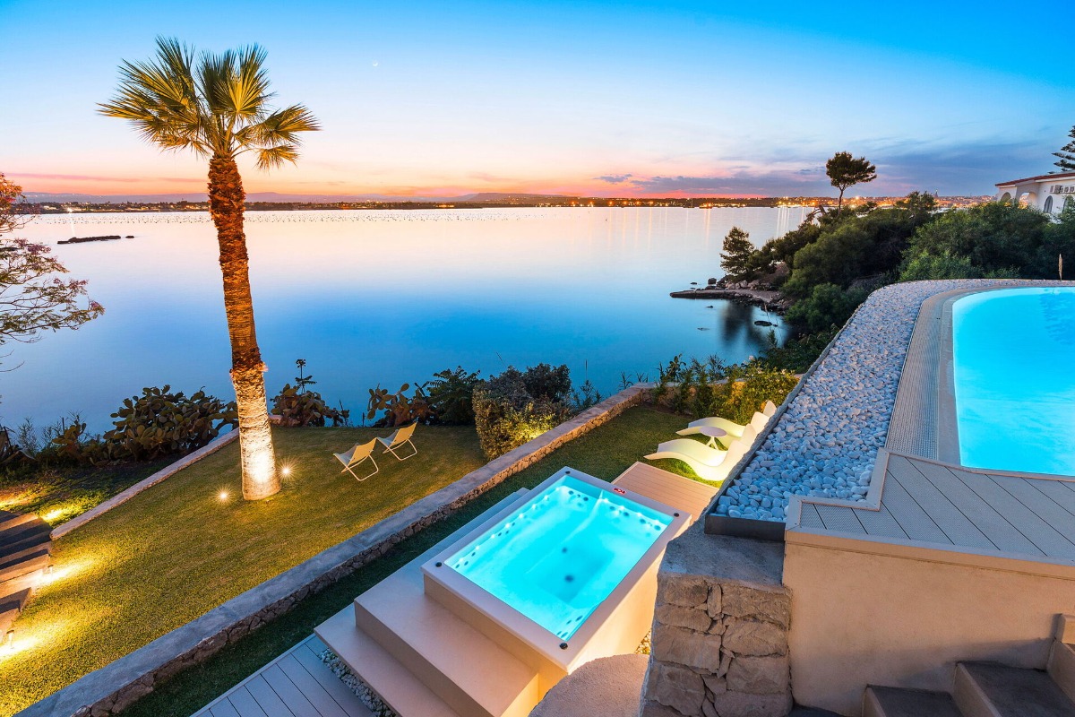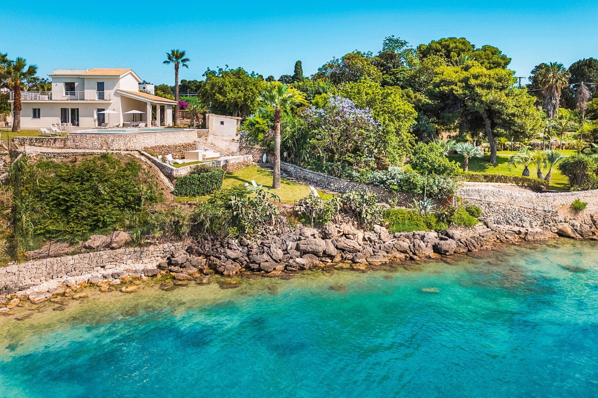 Эта вилла расположена прямо у воды на одном из самых красивых участков побережья рядом с Сиракузами.