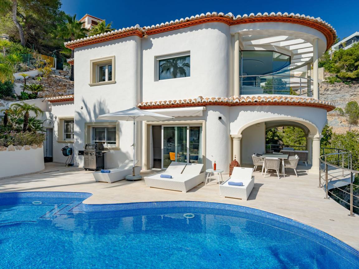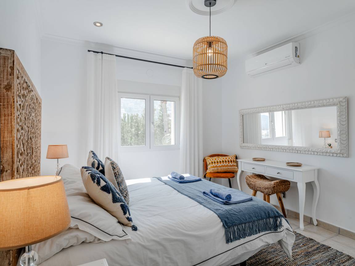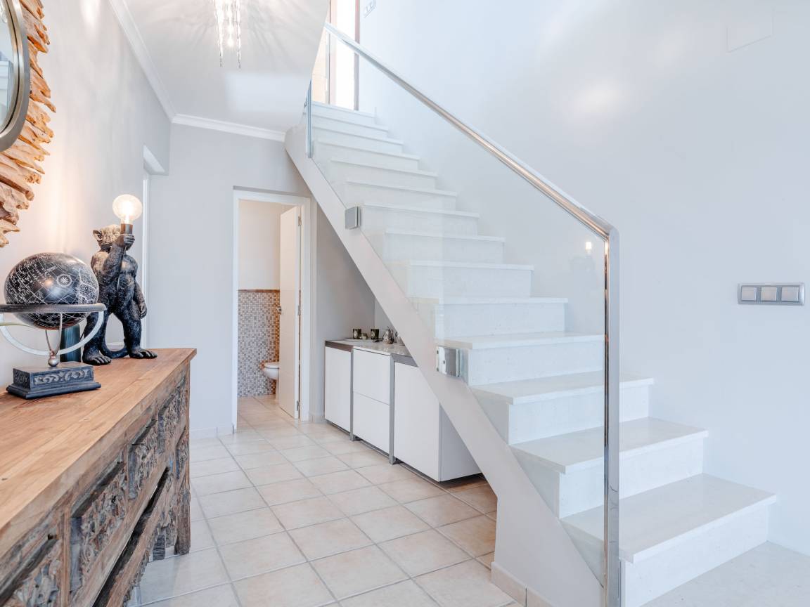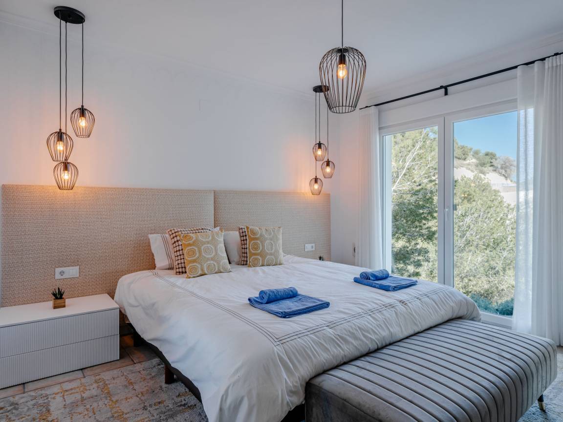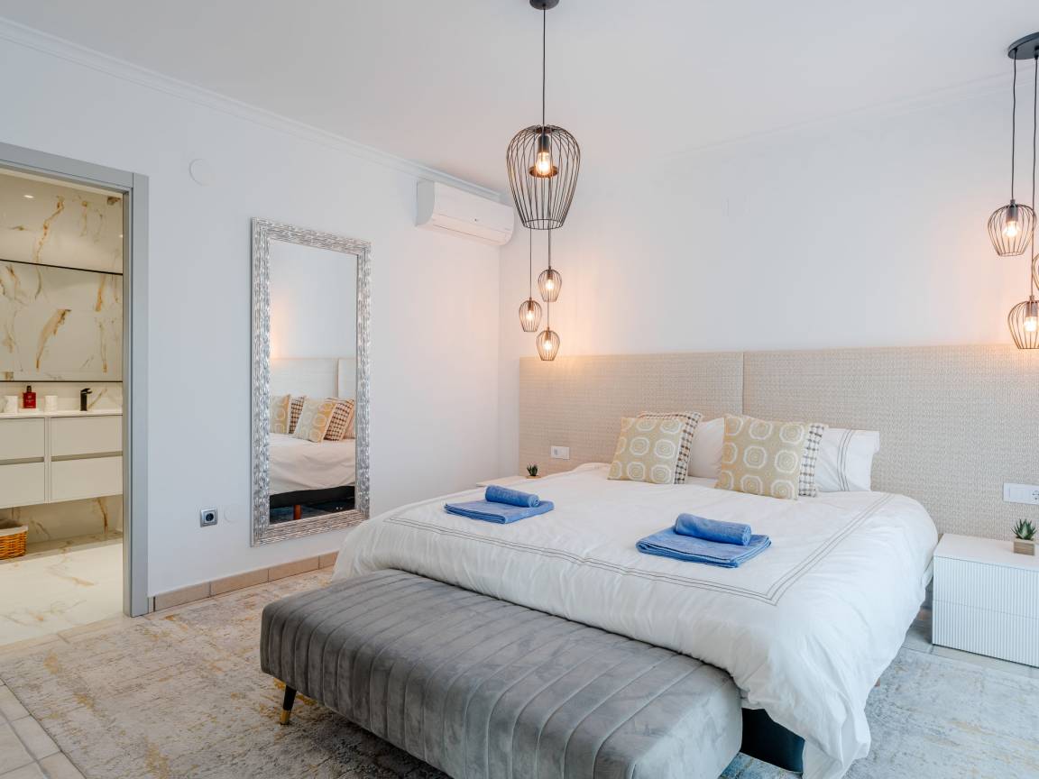 До моря 900 метров До песчаного пляжа 5000 метров До галечного пляжа 900 метров До магазина 1500 метров До ресторана 800 метров До аэропорта Alicante 107 километров Рекомендован автомобиль Вилла состоит: - гостиная - столовая - гостиная, совмещенная со столовой - кухня, совмещенная со столовой Спальни 4 - с двуспальной кроватью 3 - с двумя односпальными кроватями 1 Кол-во ванных комнат 4 - душевая кабина, умывальник, WC - 3 - ванна, умывальник, WC - 1 - отдельный туалет 1 На вилле есть: Отопление/охлаждение объекта - Кондиционеры - Электрическое отопление Мультимедиа - ТВ (количество телевизоров) 2 - Спутниковые каналы - Stereo система - Радио Кухня - Посуда, столовые приборы, проч. - Холодильник - Микроволновая печь - Стиральная машина - Посудомоечная машина - Утюг и гладильная доска - Кофеварка - Электрочайник - Тостер Коммуникации - WI-FI Аксессуары для детей - Детская кроватка - Детский стульчик Охранные системы - Сигнализация Проживание с домашними животными - по запросу Территория: - Парковка на количество машин 3 - Сад - Терраса - Садовая мебель - Барбекю - Бассейн с подогревом - Шезлонги - Зонтик от солнца - Летний душ - Тренажеры/тренажерный зал Краткое описание: Современная роскошая вилла с панорамным видом на море и долину, расположенная в одном из самых спокойных и зелёных районов побережья. Новый дом, продуманная архитектура и ощущение пространства — здесь всё про комфорт и приватность.