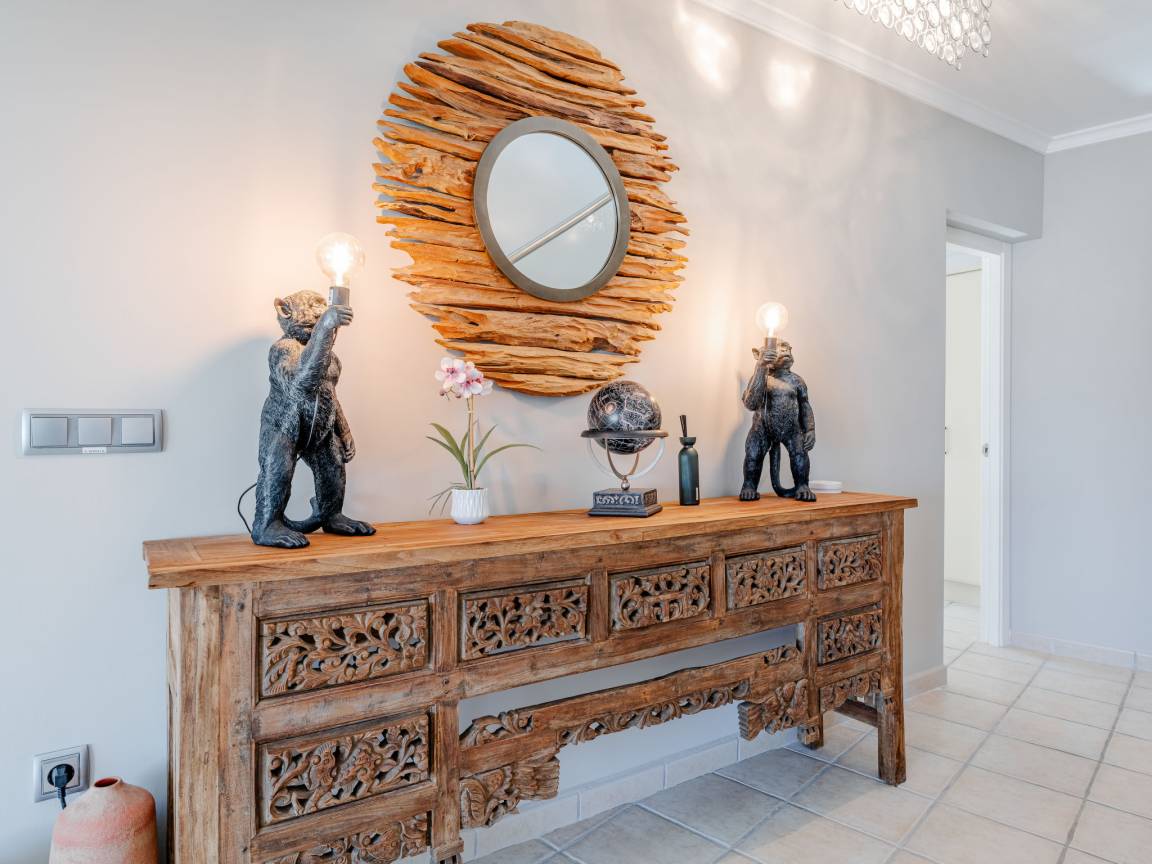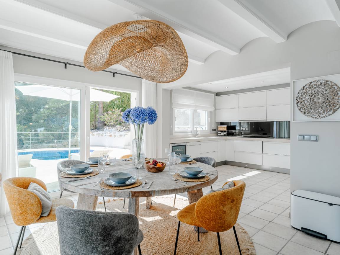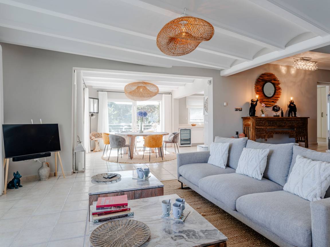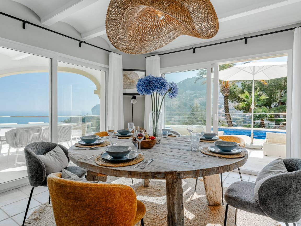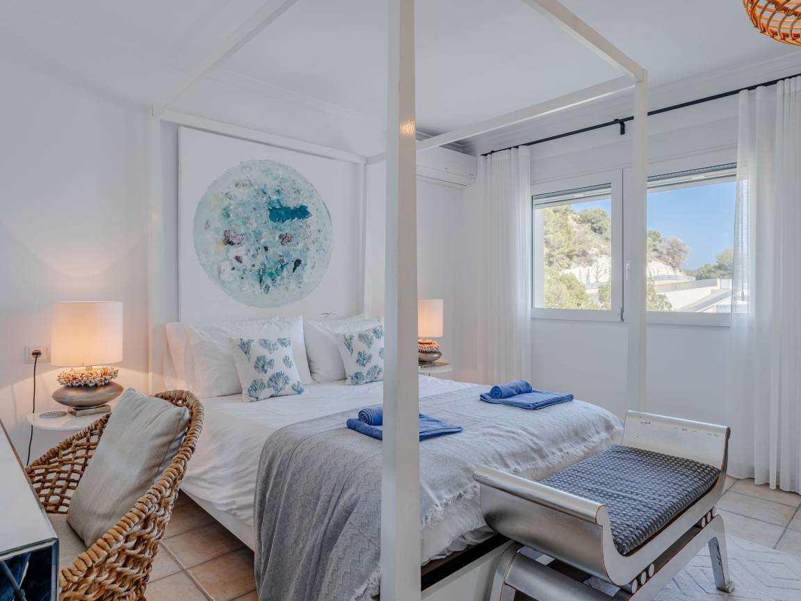 До моря 900 метров До песчаного пляжа 5000 метров До галечного пляжа 900 метров До магазина 1500 метров До ресторана 800 метров До аэропорта Alicante 107 километров Рекомендован автомобиль Вилла состоит: - гостиная - столовая - гостиная, совмещенная со столовой - кухня, совмещенная со столовой Спальни 4 - с двуспальной кроватью 3 - с двумя односпальными кроватями 1 Кол-во ванных комнат 4 - душевая кабина, умывальник, WC - 3 - ванна, умывальник, WC - 1 - отдельный туалет 1 На вилле есть: Отопление/охлаждение объекта - Кондиционеры - Электрическое отопление Мультимедиа - ТВ (количество телевизоров) 2 - Спутниковые каналы - Stereo система - Радио Кухня - Посуда, столовые приборы, проч. - Холодильник - Микроволновая печь - Стиральная машина - Посудомоечная машина - Утюг и гладильная доска - Кофеварка - Электрочайник - Тостер Коммуникации - WI-FI Аксессуары для детей - Детская кроватка - Детский стульчик Охранные системы - Сигнализация Проживание с домашними животными - по запросу Территория: - Парковка на количество машин 3 - Сад - Терраса - Садовая мебель - Барбекю - Бассейн с подогревом - Шезлонги - Зонтик от солнца - Летний душ - Тренажеры/тренажерный зал Краткое описание: Современная роскошая вилла с панорамным видом на море и долину, расположенная в одном из самых спокойных и зелёных районов побережья. Новый дом, продуманная архитектура и ощущение пространства — здесь всё про комфорт и приватность.