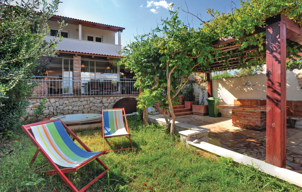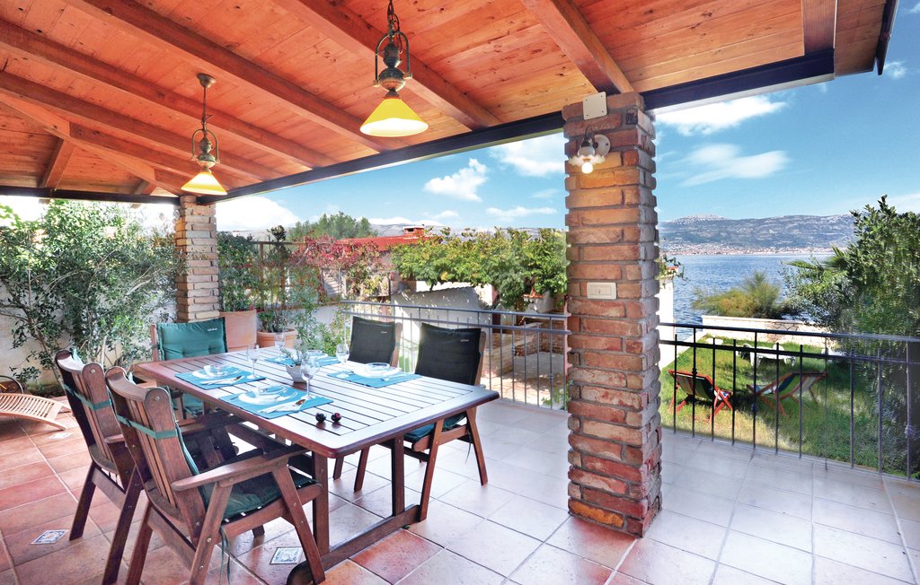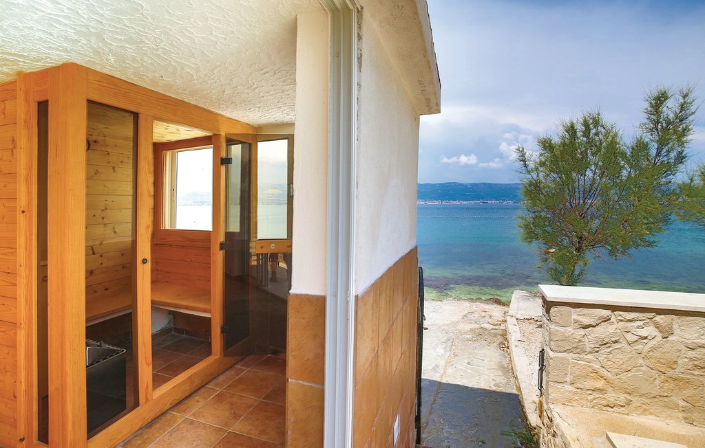 - Шезлонги - Зонтик от солнца Краткое описание: Вилла в Хорватии на первой линии от моря под Трогиром с джакузи и лужайкой!