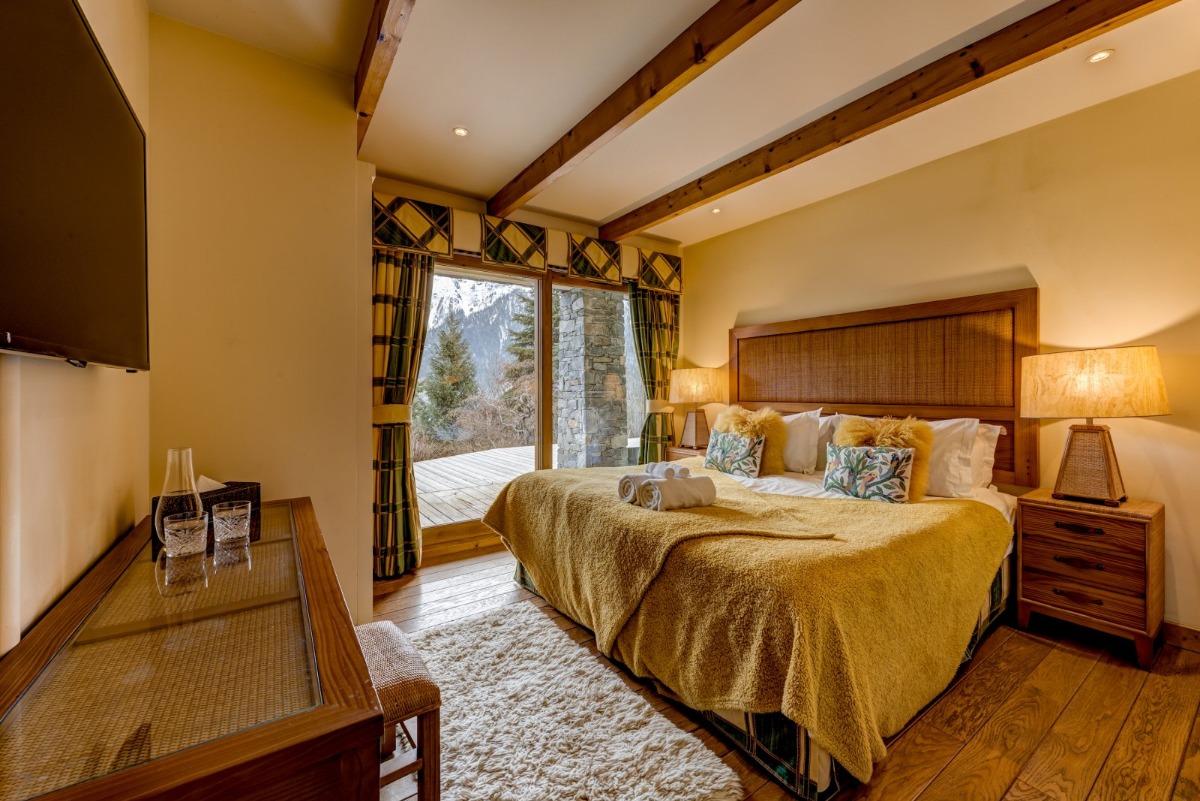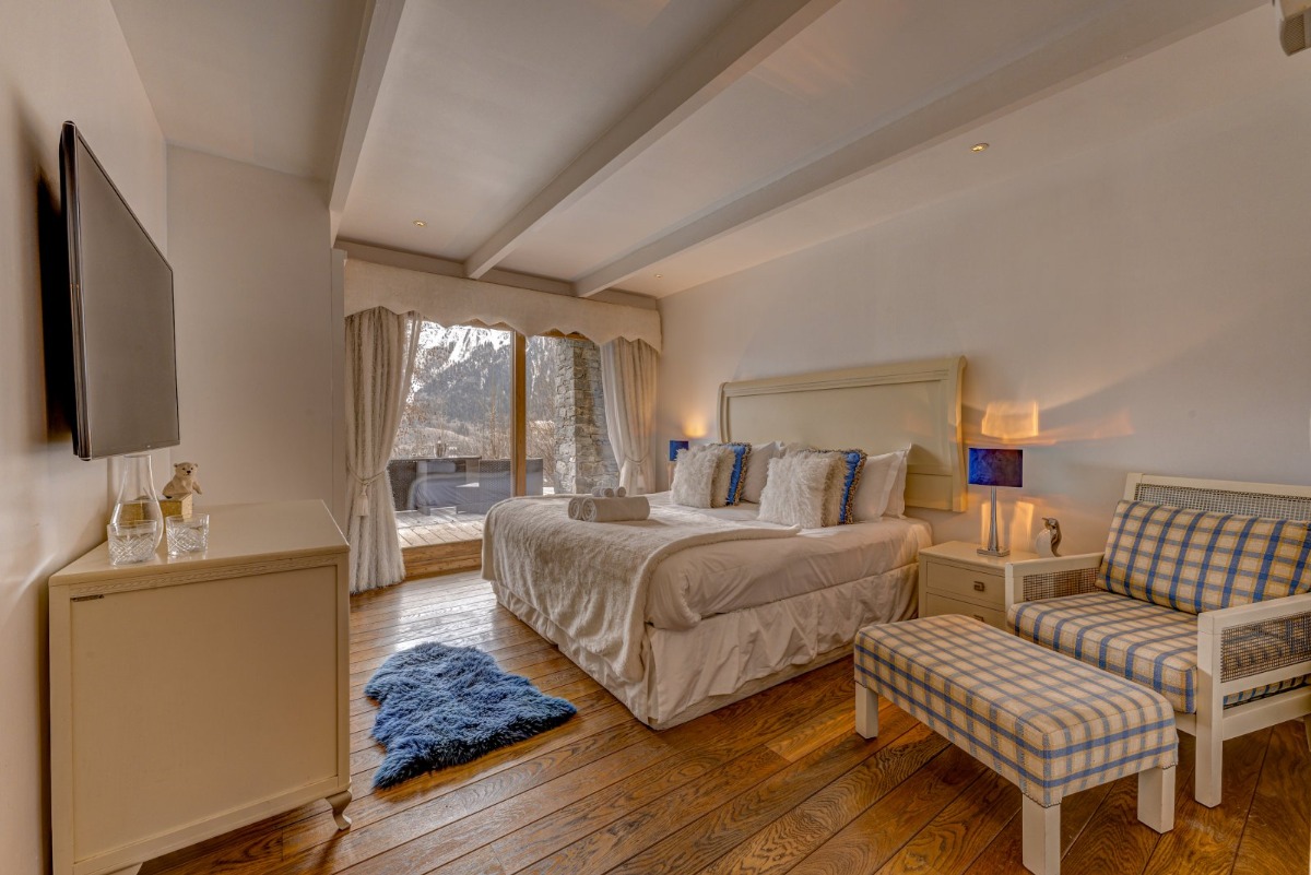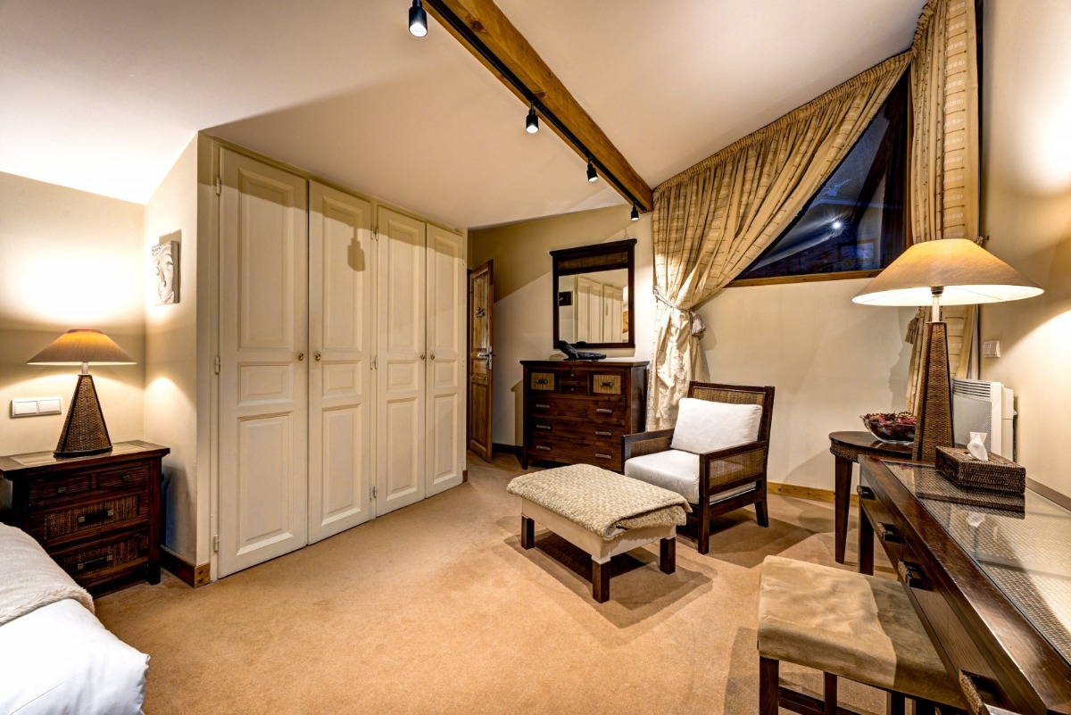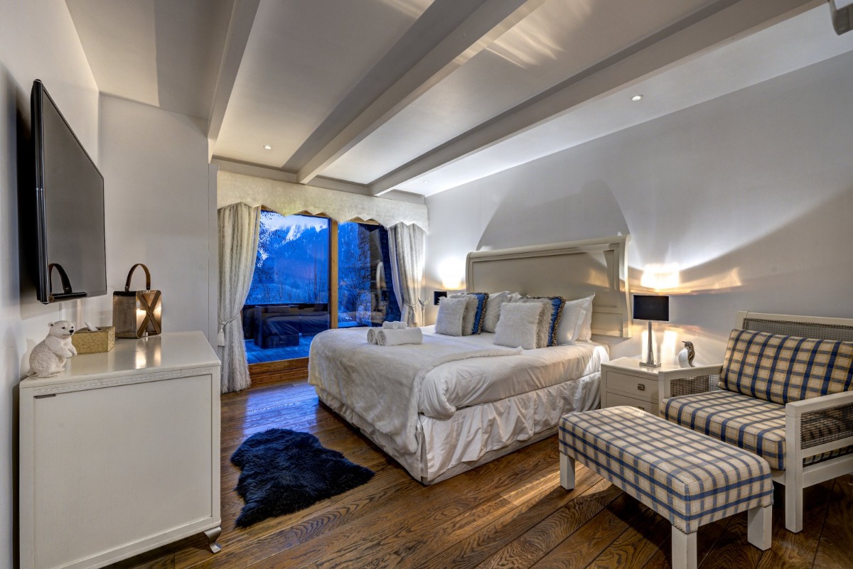 Все спальни в шале имеют выход на балкон или террасу и очень солнечные, так как расположены на южную сторону. В каждой спальне есть ТВ с DVD-плеером и док-станцией для IPod. В гостиной панорамные окна от потолка до пола, чтобы максимально открыть великолепный вид на долину и горы.