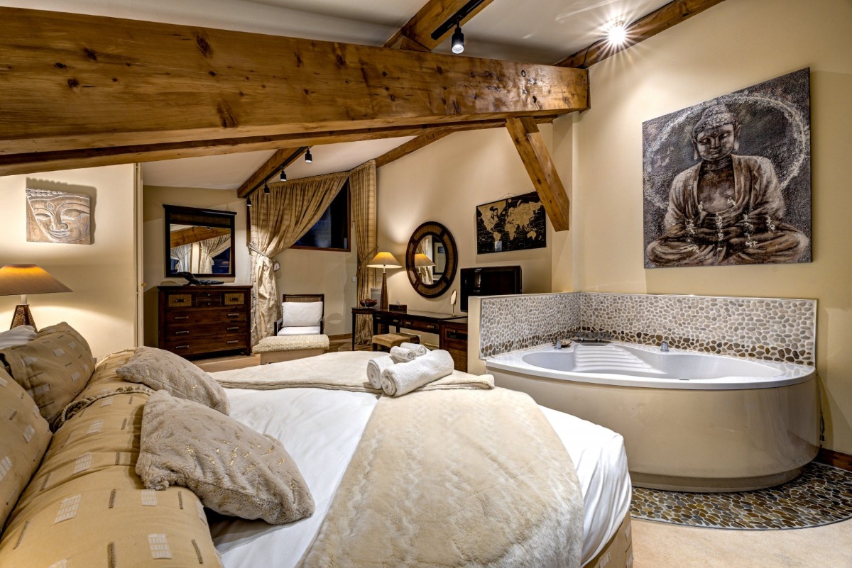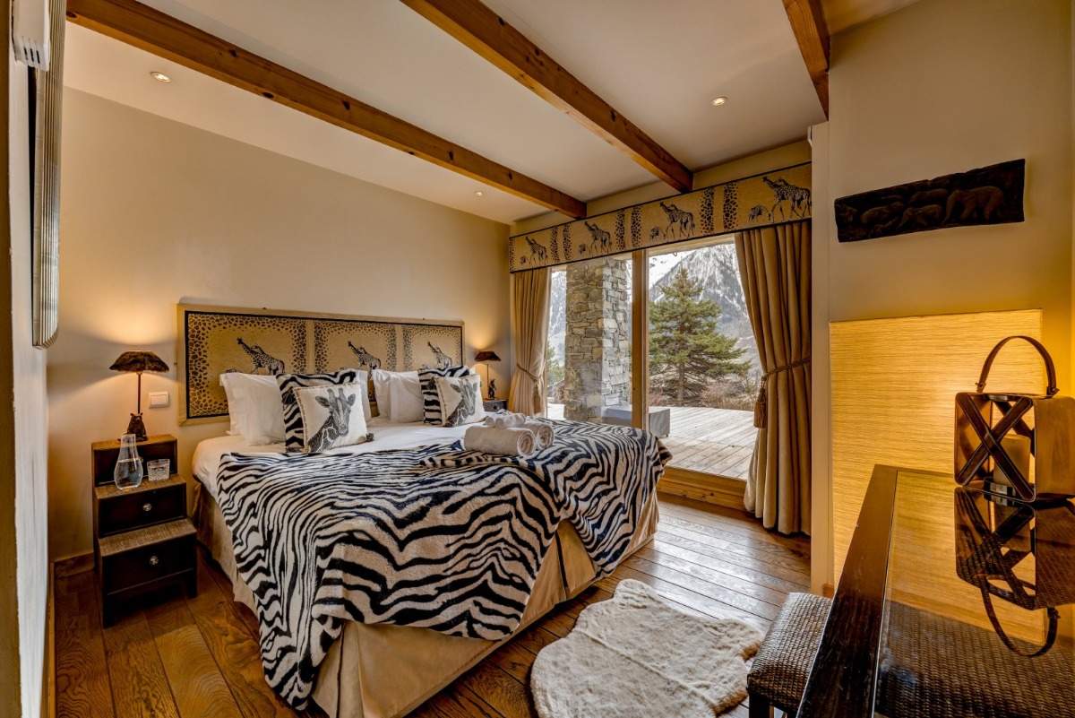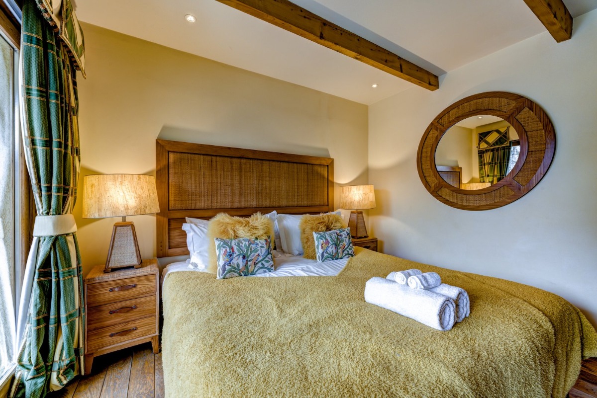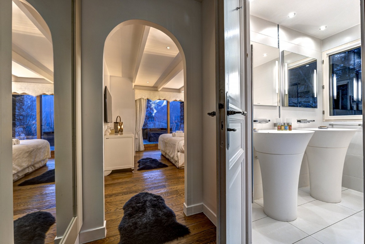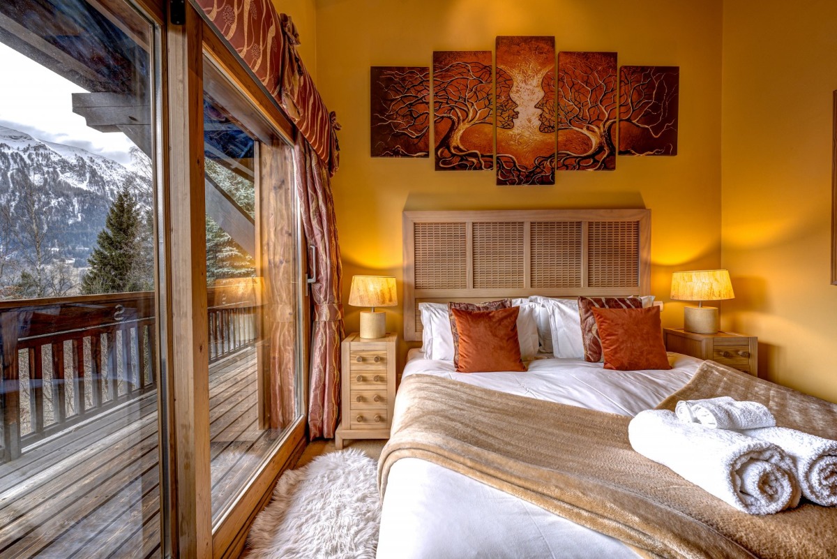 Все спальни в шале имеют выход на балкон или террасу и очень солнечные, так как расположены на южную сторону. В каждой спальне есть ТВ с DVD-плеером и док-станцией для IPod. В гостиной панорамные окна от потолка до пола, чтобы максимально открыть великолепный вид на долину и горы.