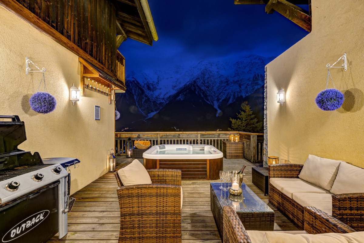 Это просторное шале с 7 спальнями, расположенное на склоне горы с прекрасными видами на долину, горы и Монблан. В шале - домашний кинозал, игровая комната, , СПА-салон полностью включает в себя сауну, хаммам, душ и массажный кабинет. В дополнение к зоне СПА снаружи имеются открытый бассейн с противотоком и, конечно, джакузи с панорамными видами на горы.