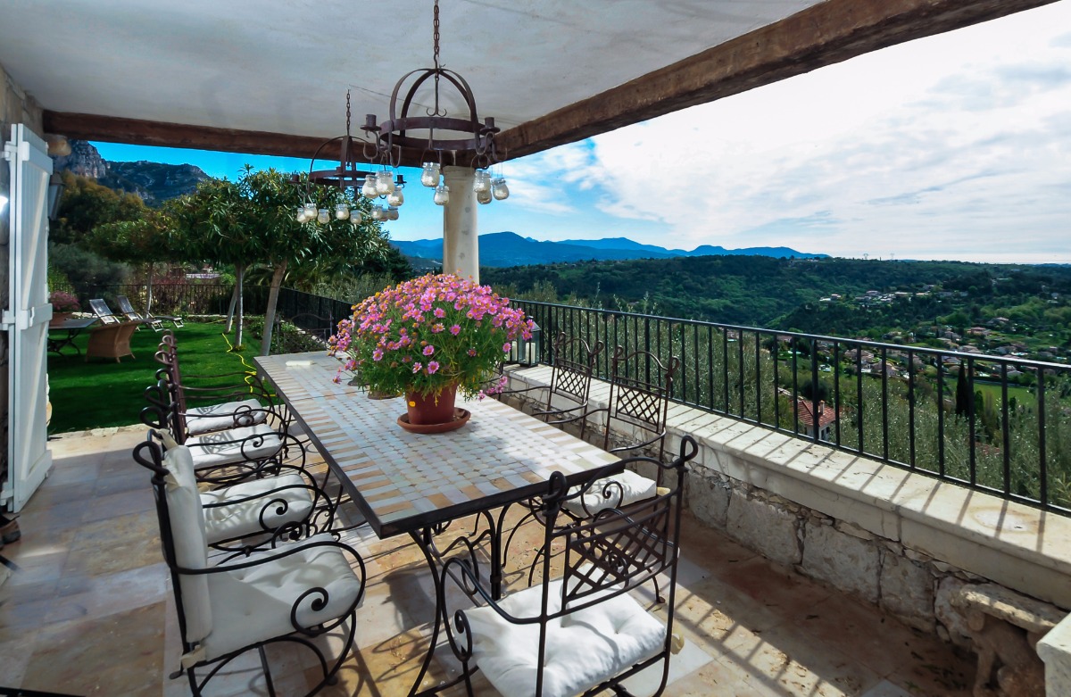 До моря 10000 метров До песчаного пляжа 10000 метров До магазина 1500 метров До ресторана 1500 метров До аэропорта Nizza 20 километров Вилла состоит: - гостиная, совмещенная со столовой - кухня, совмещенная со столовой Лофт/Мезонин - спальных мест 1 Спальни 5 - с двуспальной кроватью 3 - с двумя односпальными кроватями 2 - дополнительная кровать 2 Кол-во ванных комнат 7 - душевая кабина, умывальник, WC - 4 - ванна, умывальник, WC - 1 - отдельный туалет 2 На вилле есть: Отопление/охлаждение объекта - Центральное отопление - Кондиционеры - Камин Мультимедиа - ТВ (количество телевизоров) 6 - Спутниковые каналы - DVD Кухня - Посуда, столовые приборы, проч. - Холодильник - Микроволновая печь - Стиральная машина - Посудомоечная машина - Утюг и гладильная доска - Кофеварка Коммуникации - WI-FI Аксессуары для детей - Детская кроватка по запросу Охранные системы - Сигнализация Проживание с домашними животными - можно - по запросу Территория: - Парковка на количество машин 3 - Сад - Терраса - Садовая мебель - Барбекю - Бассейн - Шезлонги - Зонтик от солнца - Теннисный корт Краткое описание: Великолепная вилла с панорамным видом на побережье от итальянской границы до бухты Канн, в 1500 метрах от центра средневекового города Ванс. Эта вилла класса люкс располагает бассейном с соленой водой и подогревом, частным теннисным кортом и полем для игры в петанк. В живописном городе Ванс - множество кафе, ресторанов, магазинов, художественных галерей, мишленовский ресторан. Ближайшие пляжи - Кань сюр Мер.